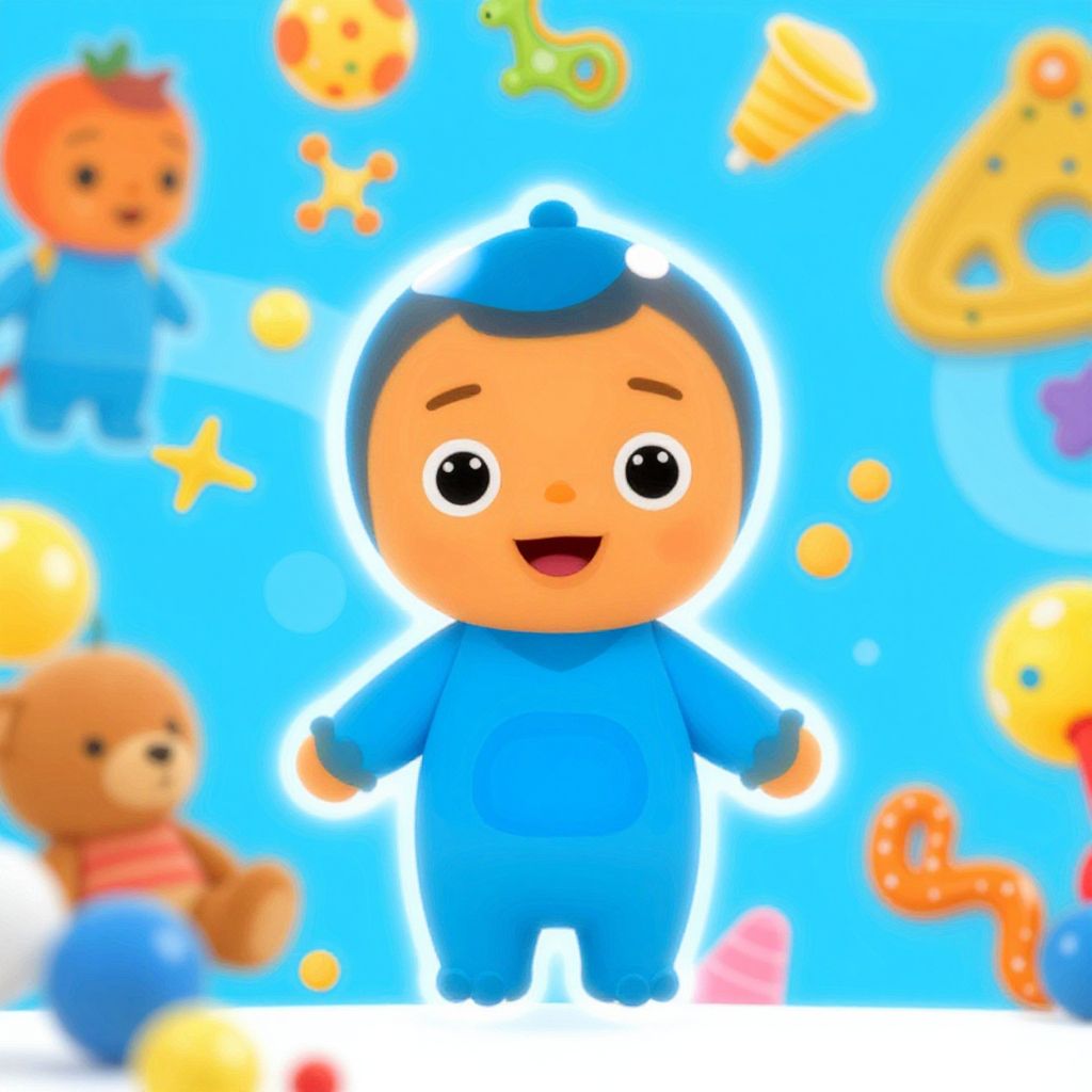 Background Blippi wallpaper featuring vibrant, playful elements inspired by Blippi's colorful style, with bright blue and orange hues, kids' toys, and animated shapes creating a fun and energetic atmosphere for a child's room or digital device.