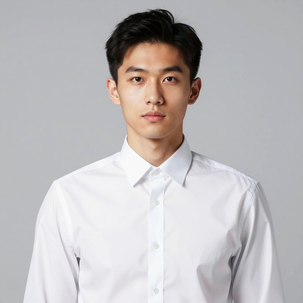 Portrait of an Asian man wearing a tailored grey suit with a white dress shirt and dark tie, seated on a grey couch against a plain white background. He has short black hair and a serious, confident expression, conveying a professional and sophisticated demeanor.