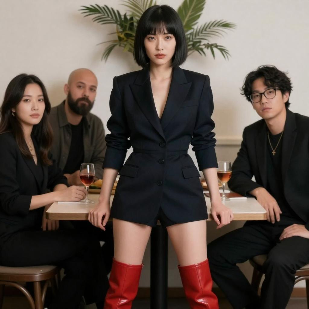 High-fashion cyberpunk editorial, 50mm lens bokeh, cinematic rim lighting, subtle film grain, ultra-detailed portrait series of neon samurai warriors in rain-soaked Tokyo alley, holographic dashboards, reflective chrome and glass, neon signage, dramatic rim light, atmospheric fog, clean outlines and precise edges, confident expressions and executive fashion, high contrast, subtle noise, long shadows, futuristic corporate aesthetics