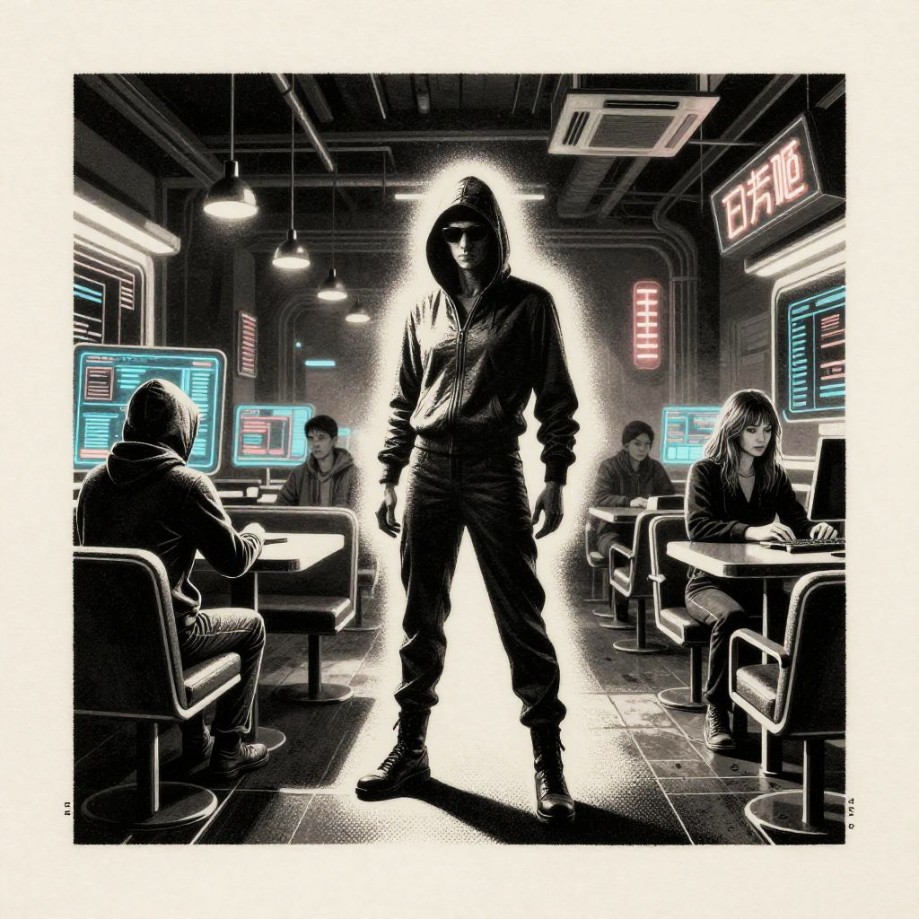 Cyberpunk Samurai and Executives in Rainy Tokyo Alley