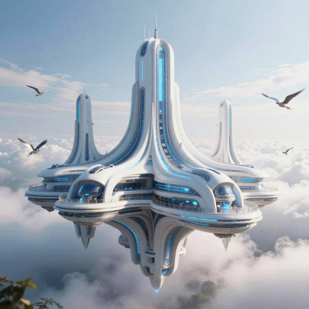 Futuristic Floating Temple in Clouds