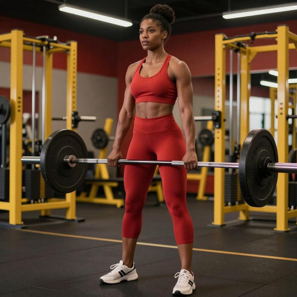 Muscular Woman Lifting Barbell Gym