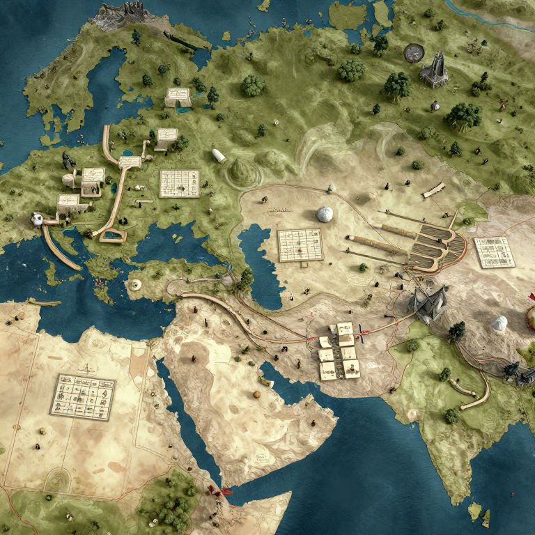 Removable aerial view from high up on the map of a medieval high fantasy world. some objects are blueprint style, the rest in high fantasy. people are shown with matching character sheets.,
