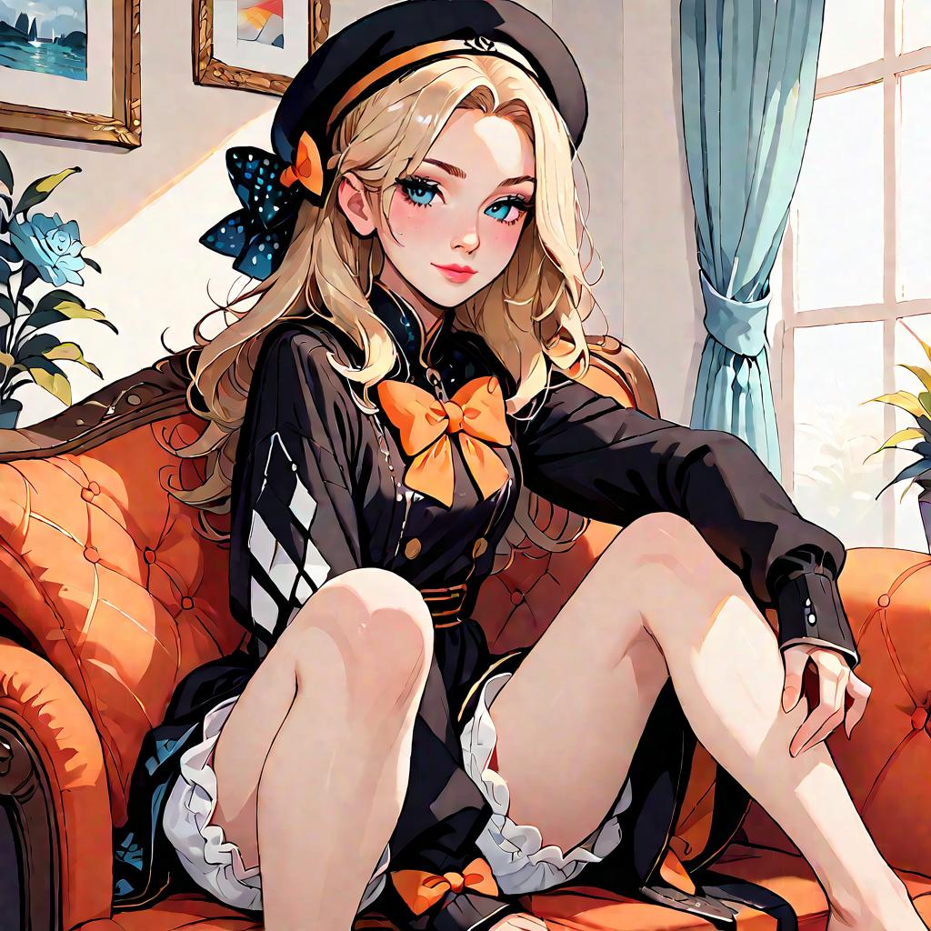 Anime Girl with Blonde Hair and Red Bowtie
