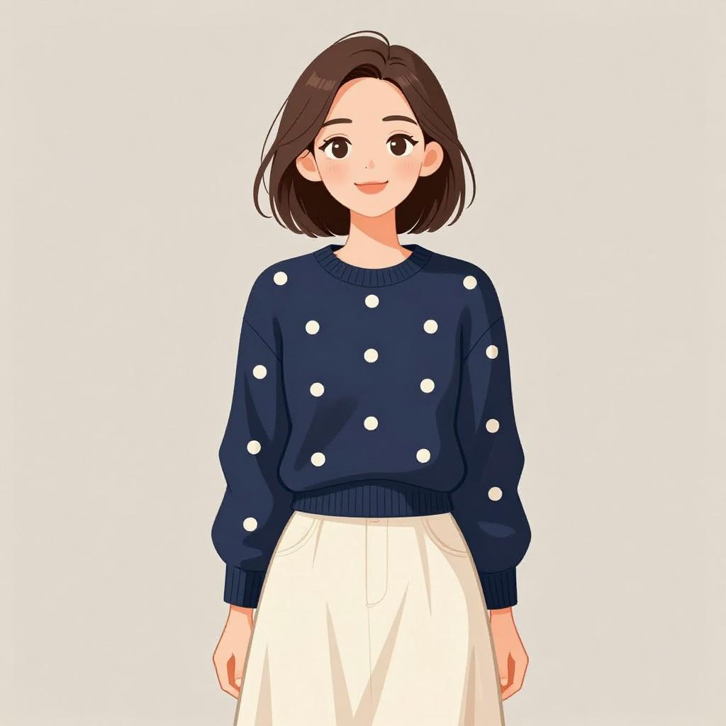 Woman with pretty face and pretty hair. smiling Woman, comfy, oversized cowl neck sweater in off-white, chunky knit texture, long sleeves, dropped shoulder seams, burgundy skinny pants, minimal makeup, hair flowing naturally. --sref 1467