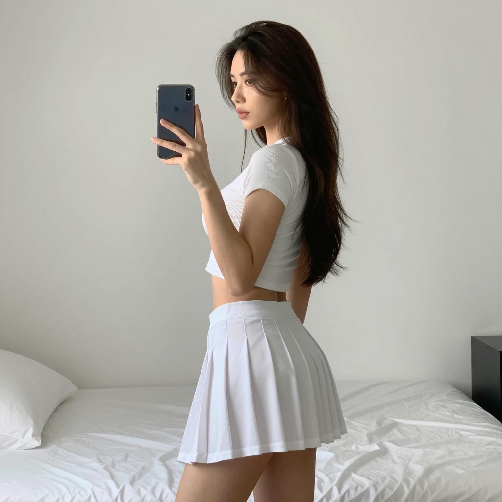 Stylish Mirror Selfie in Cozy Bedroom