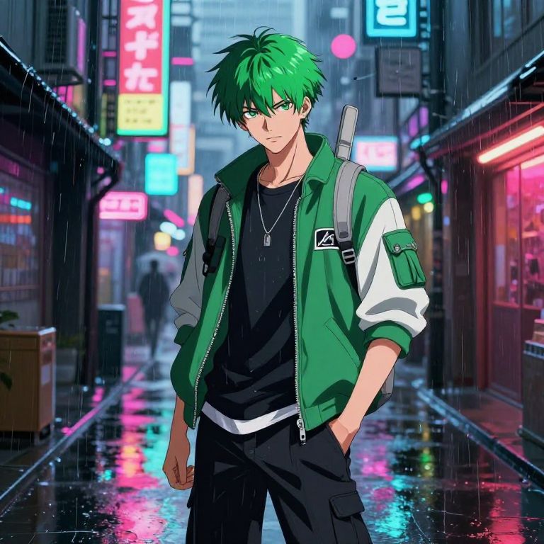 Energetic Neon Green Cyberpunk Anime