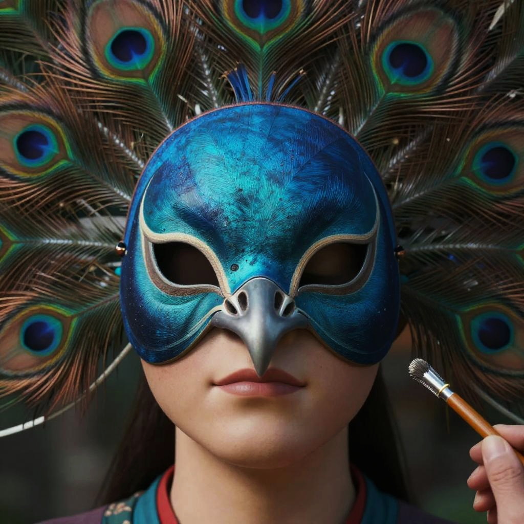 Hyperrealistic Painter with Peacock Mask