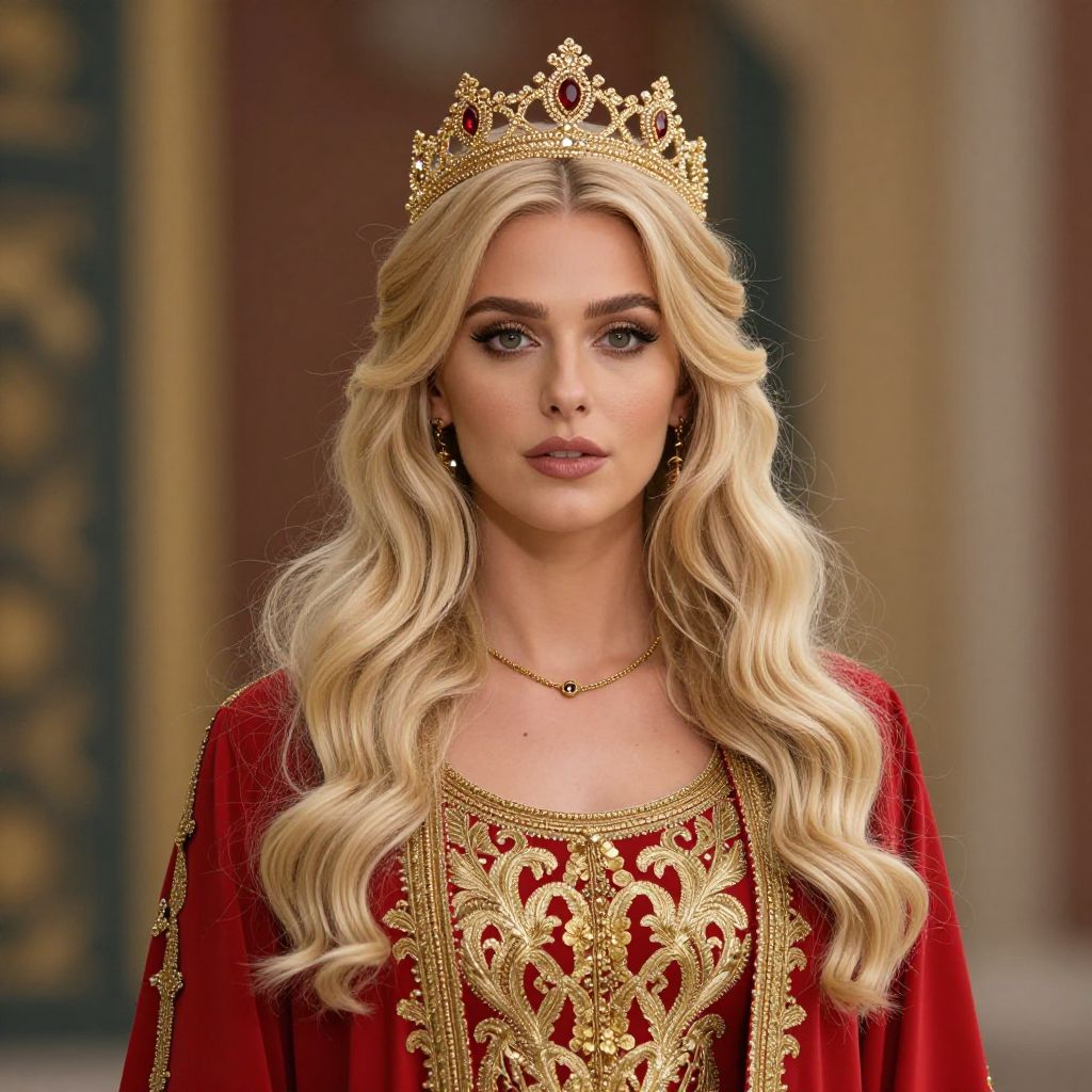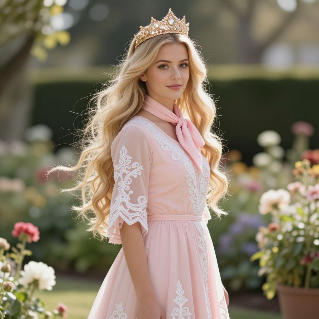 Blonde Woman in Yellow Dress with Crown