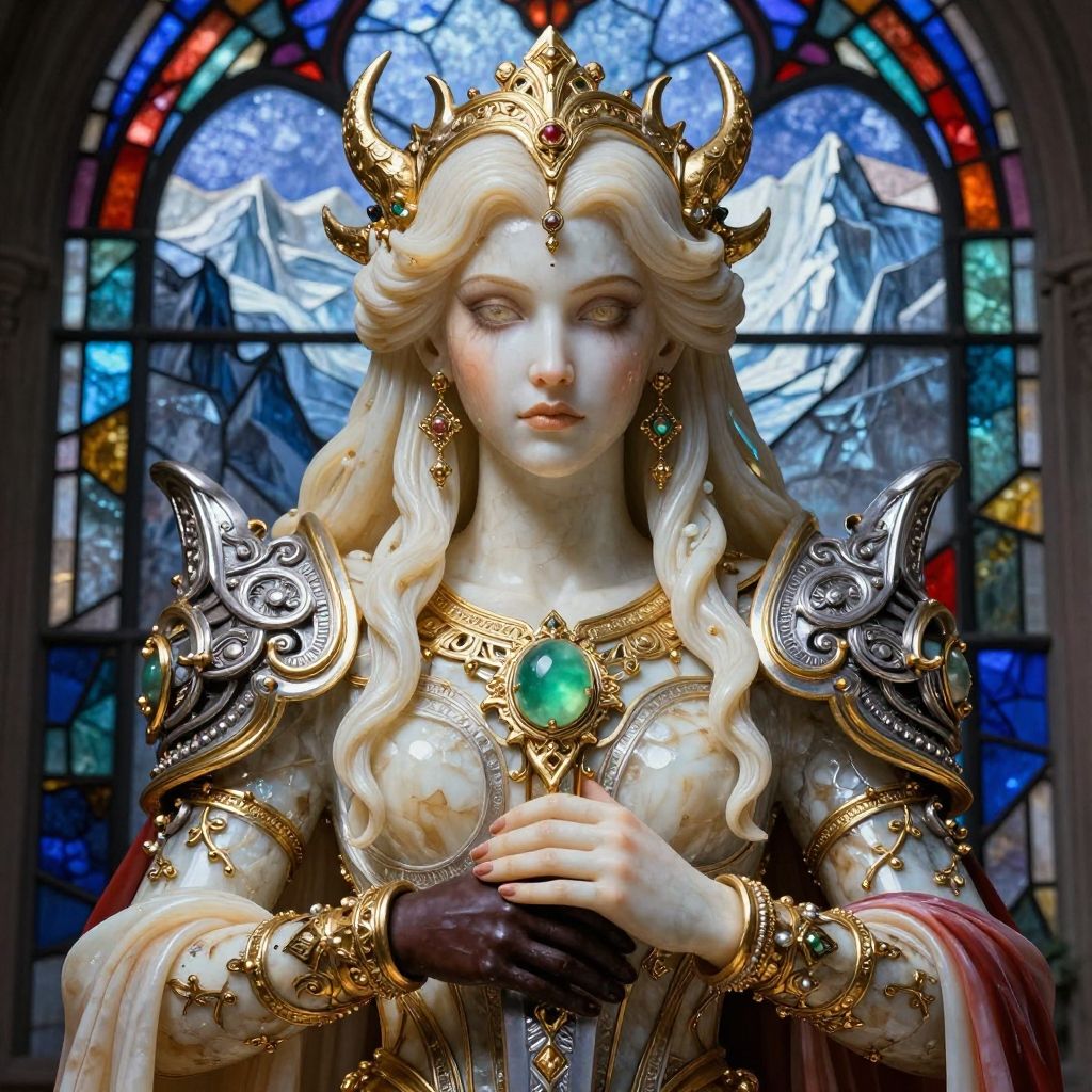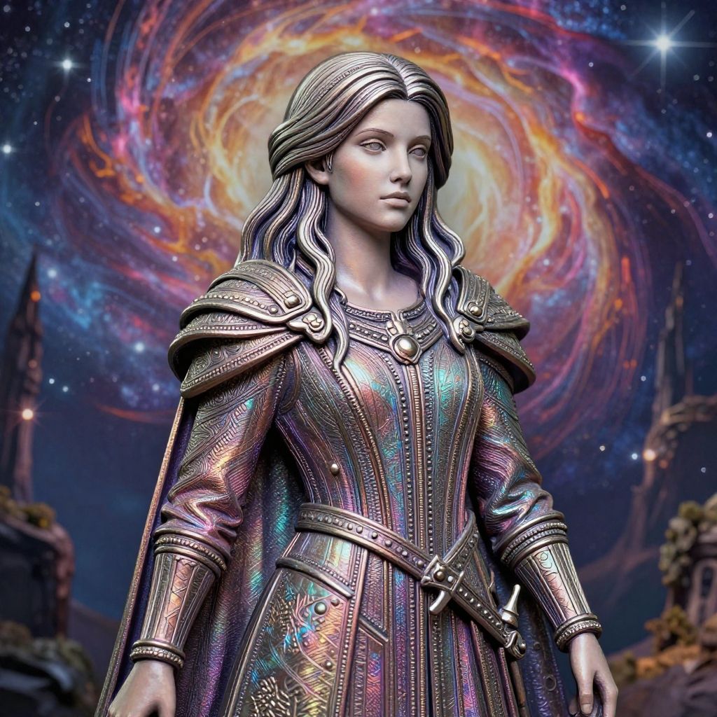 Score_9, score_8_up, 3d statue by daturahex, futuristic jewelry, 1girl goddess, absolute perfection, exstatic, long dress, otherworldly, grim, small breasts, pale, intricate details, monumental, extremely detailed, professional, cinematic, singular, sharp focus, beautiful, cute, surreal, artistic, pure, deep color, illuminated, very inspirational, cheerful, vibrant, light
