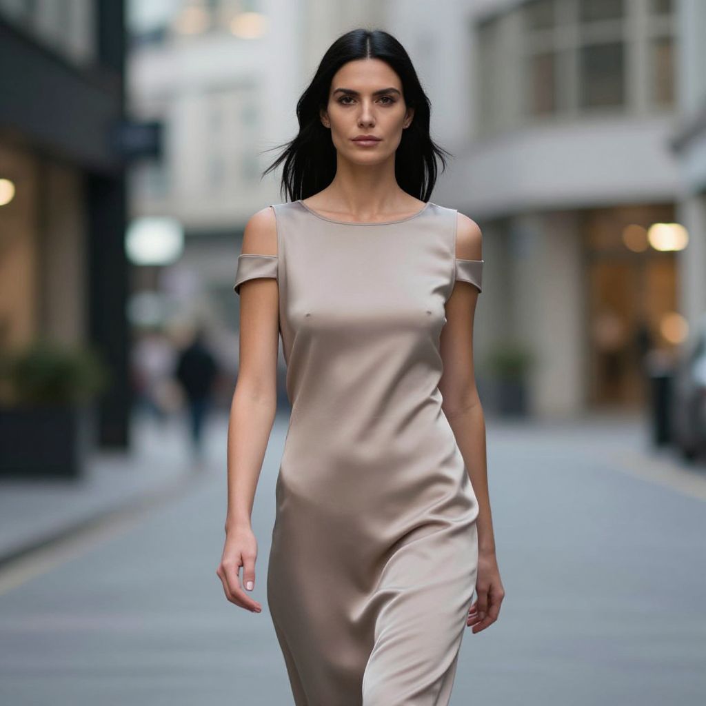 Minimalist Silk Dress in Urban Evening