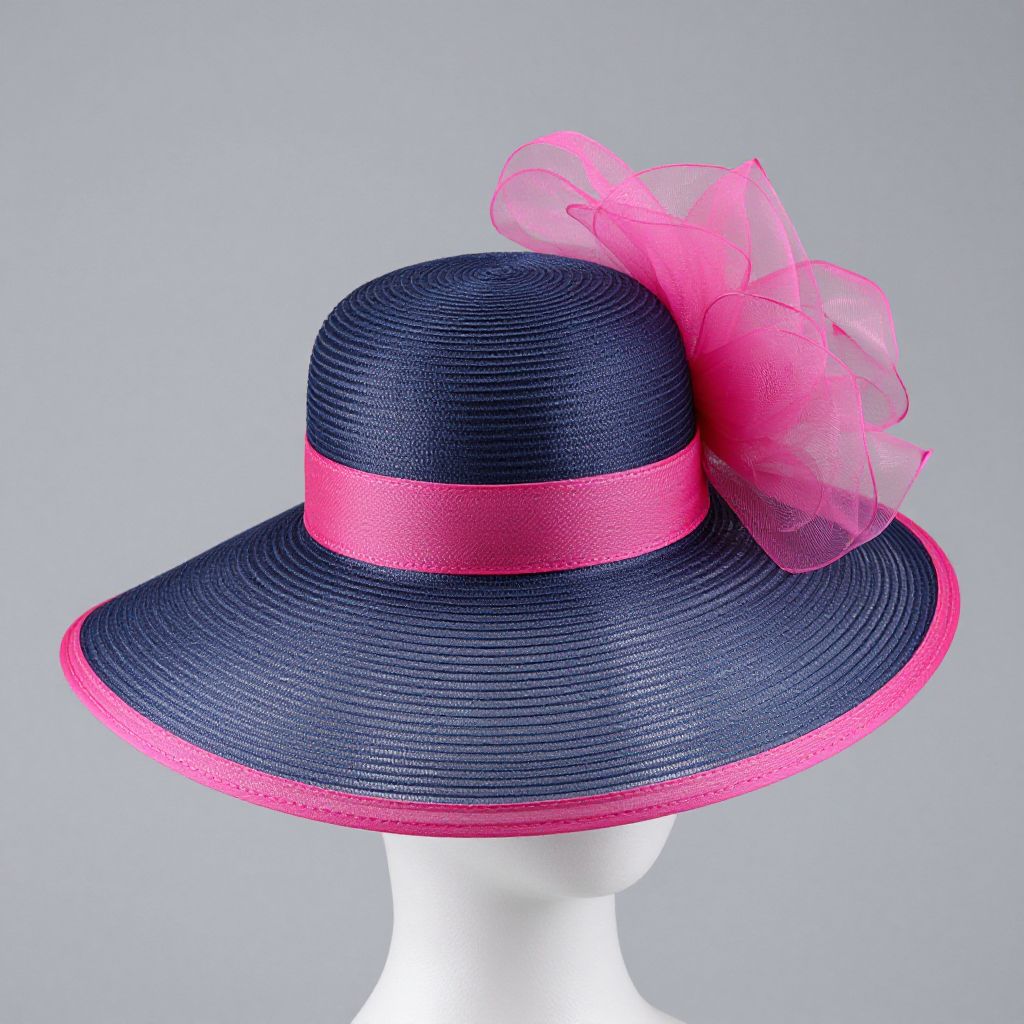Navy and Hot Pink Derby Hat