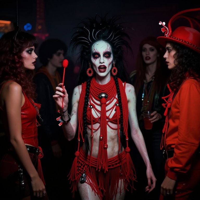 "French Knot 1980s high-life party, lsd, psychedelic, horror, evil, terrifying, Retrofuturism, surreal nightmare, full color, jodorowski style, dark, bleak, photograph, kodachrome,"