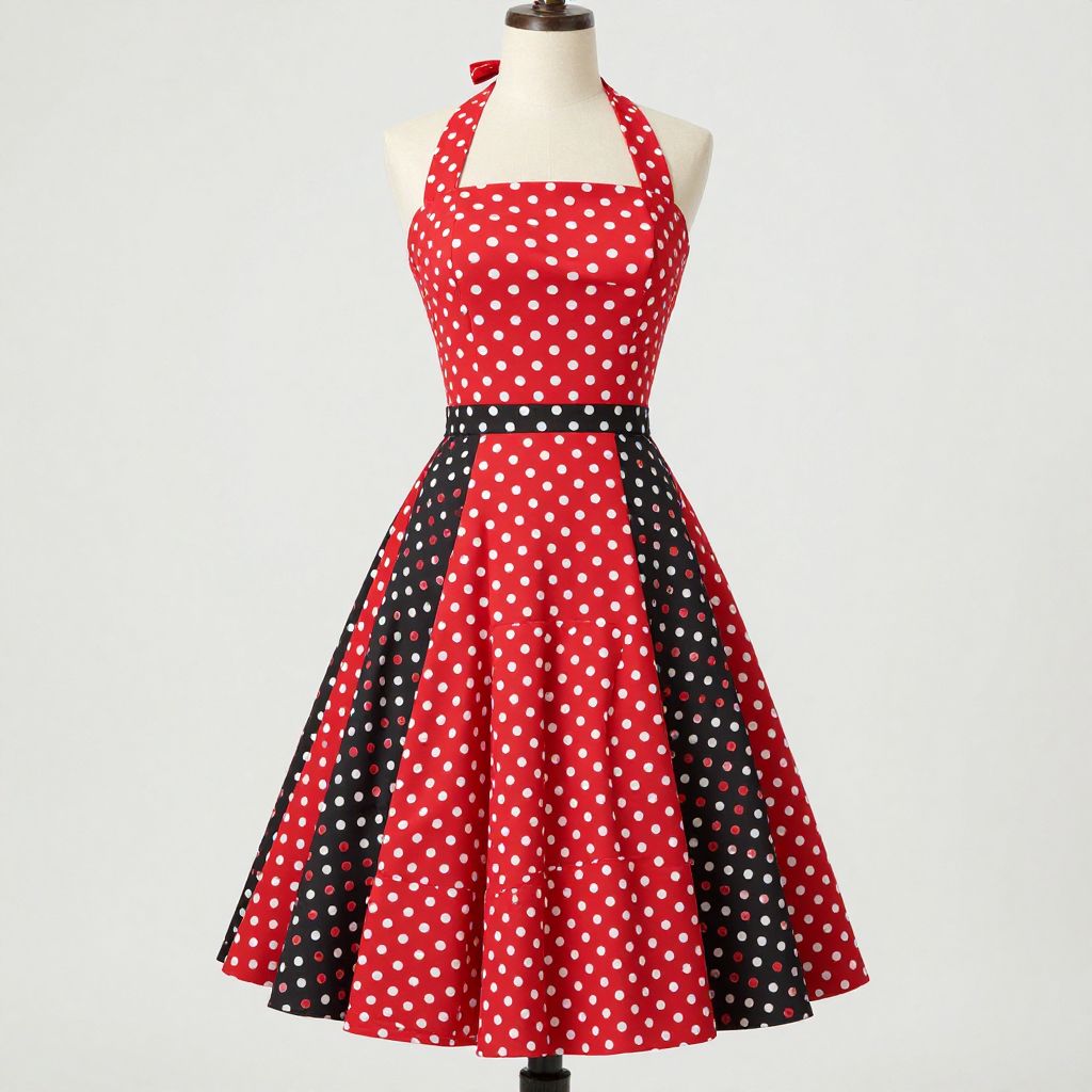 Woman Dress 2018 Summer Halter Vintage Red Black Polka Dot Dress Retro Cocktail Party 50s 60s Rockabilly Bandage Swing Dresses