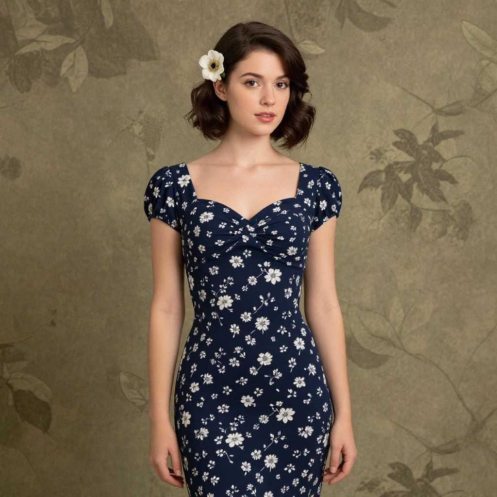 Elegant Retro Woman in Floral Fashion