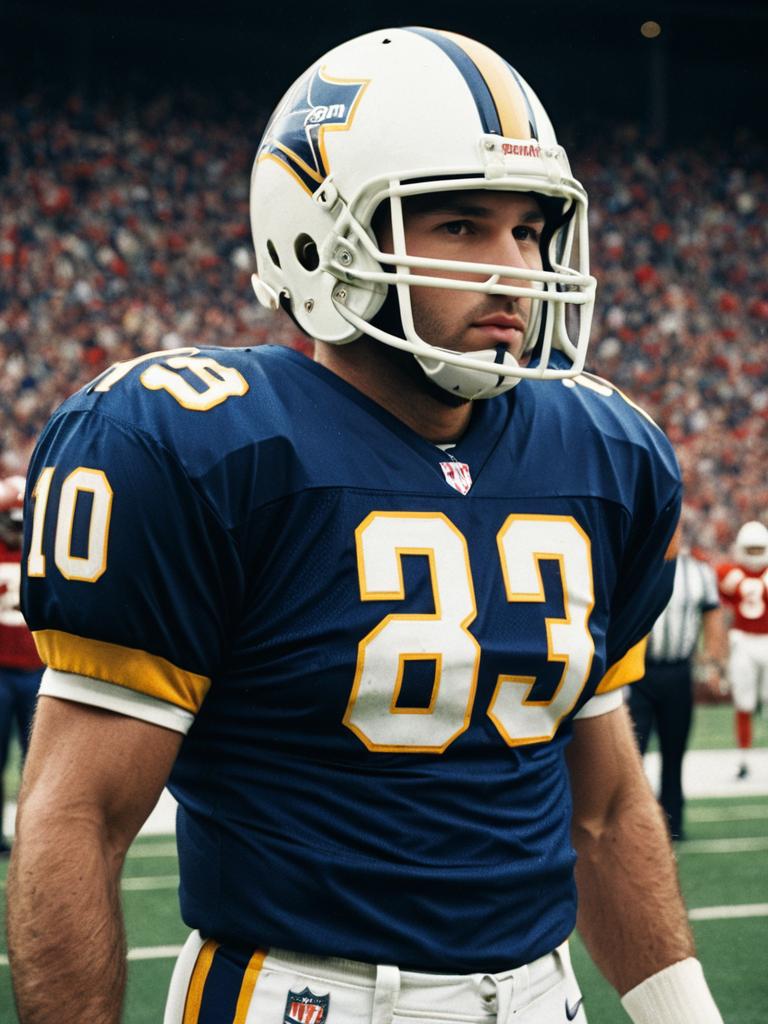 Man in American Football Uniform, cinematic realism, heroic team look