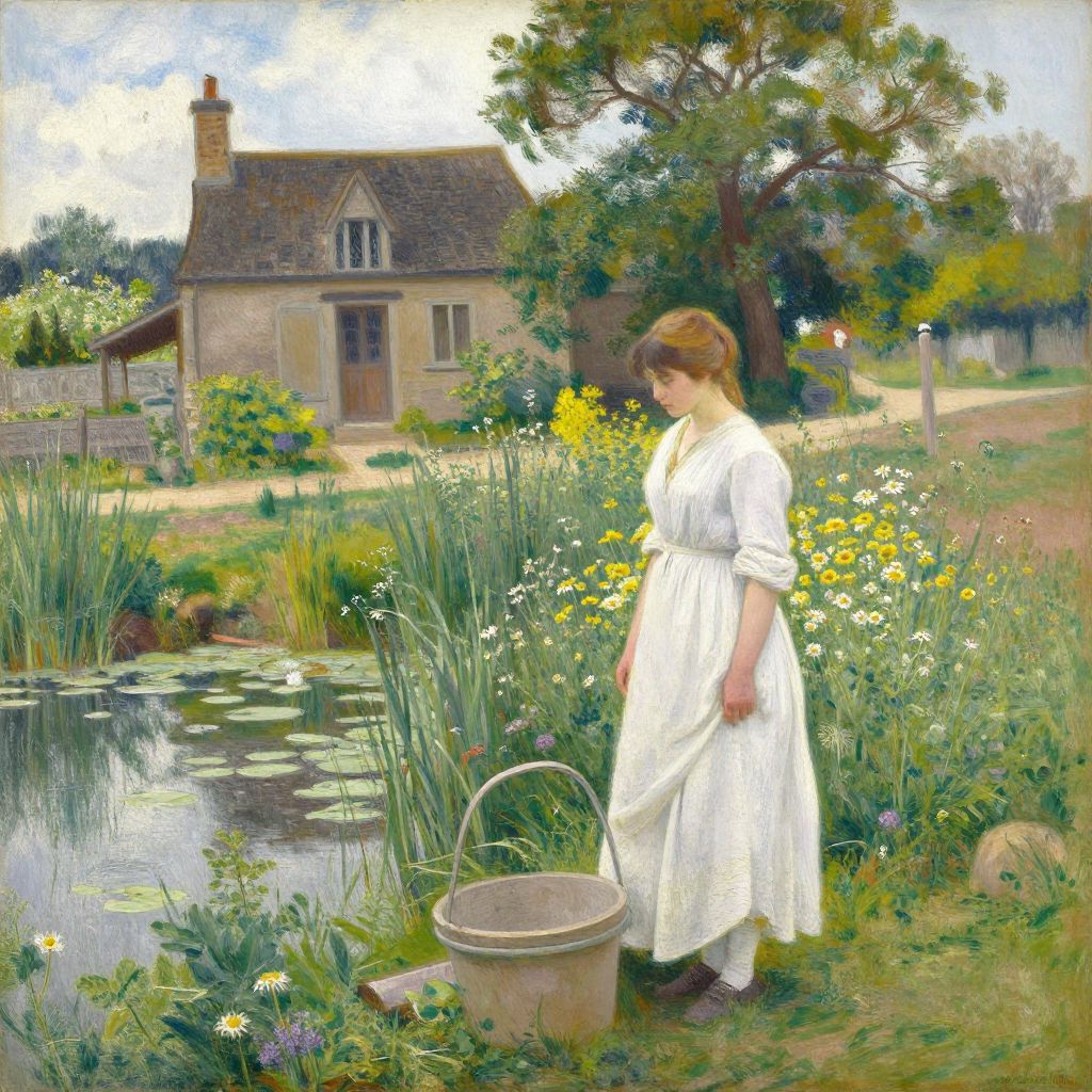 Serene Pastoral Woman by Pond