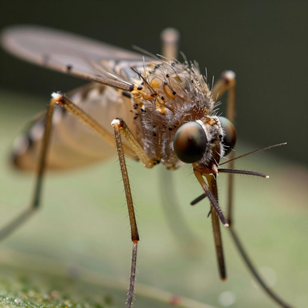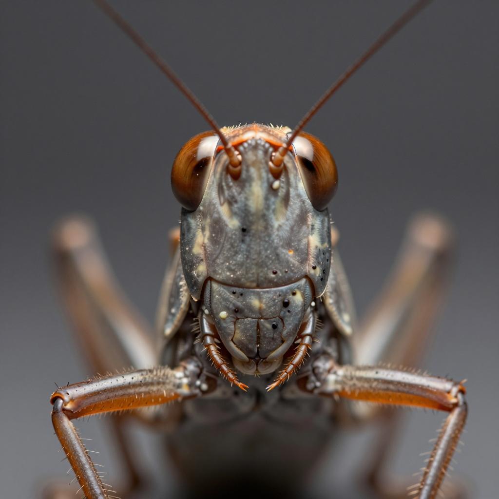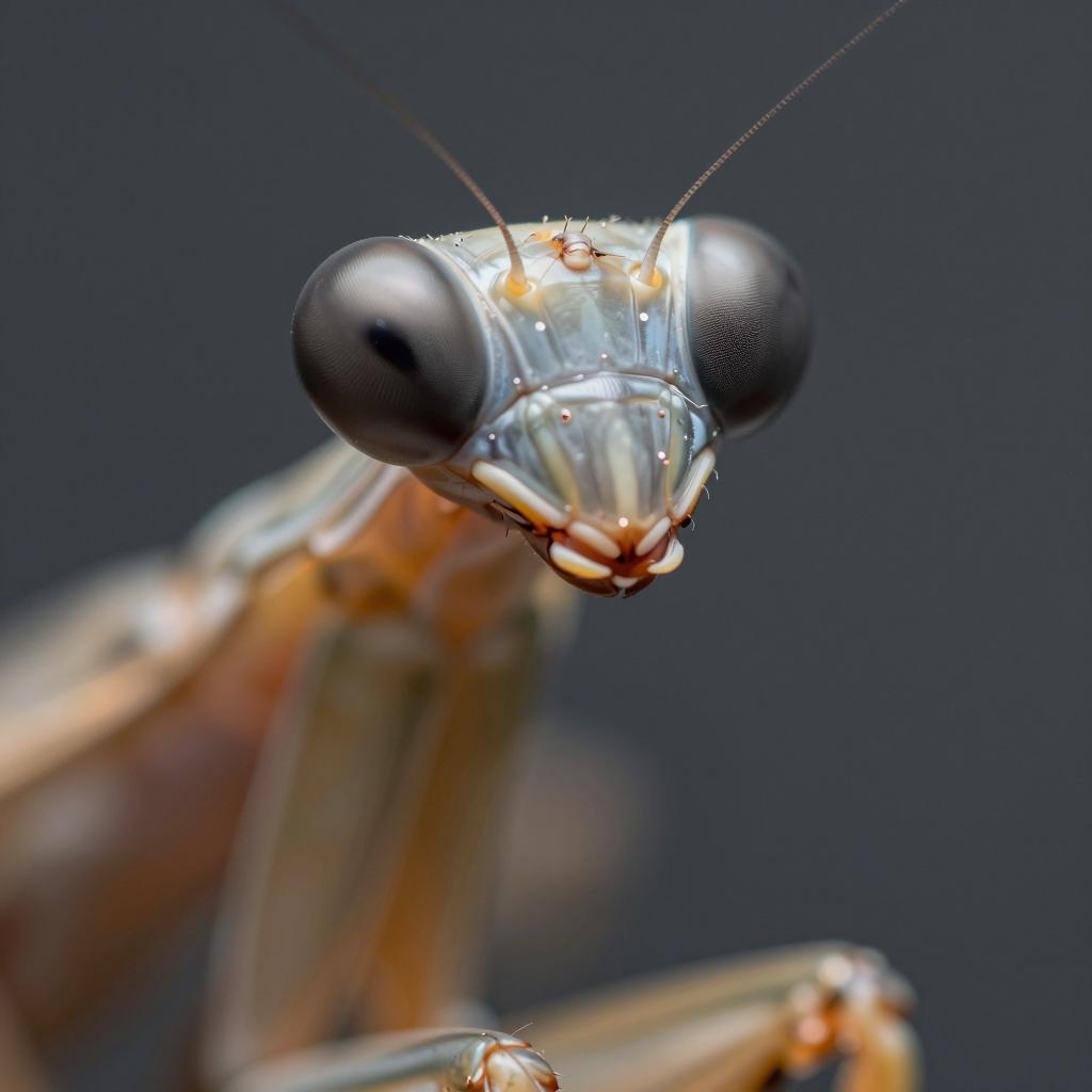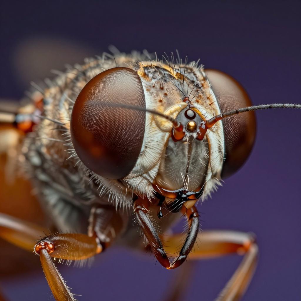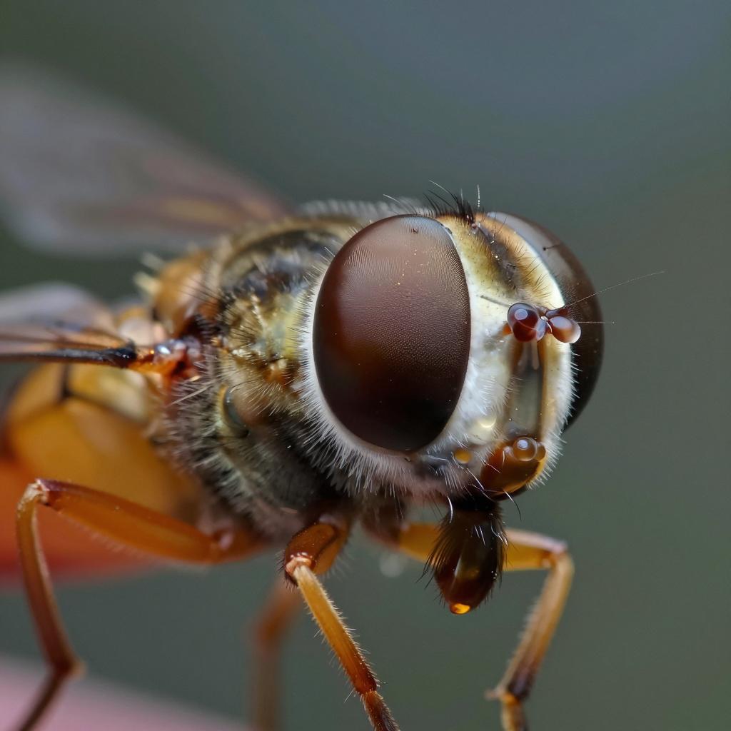 Ultra-macro close-up of lacewing face, hyper-detailed compound eyes, fine antennae and mouthparts in sharp focus, eyes in warm chestnut brown with golden center, tiny hairs and textures clearly visible, shallow depth of field, dark teal fading into near-black corners, ring-light style illumination with circular catchlights, captured with professional macro lens, insanely detailed, crisp focus on eyes and head, photorealistic insect macro photography