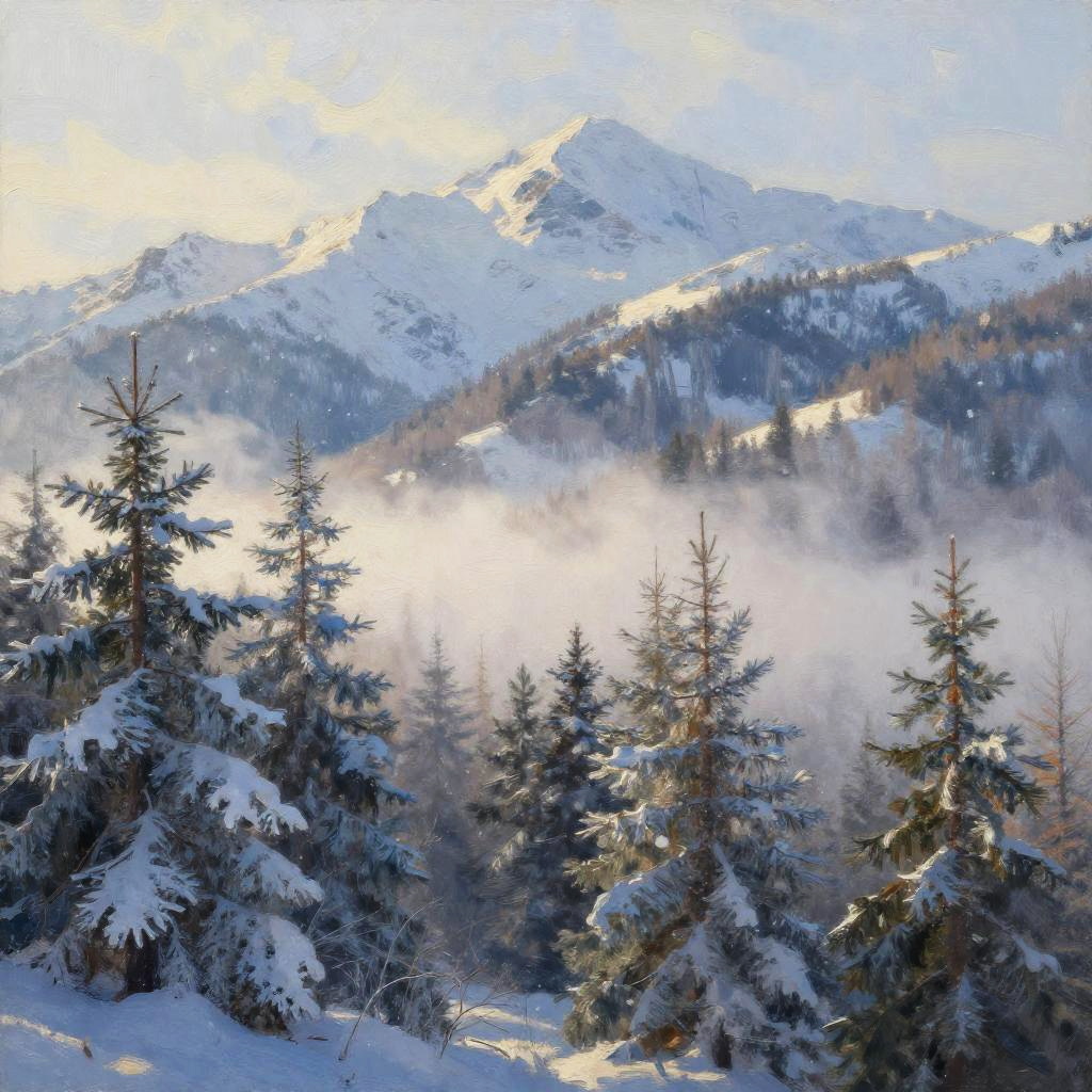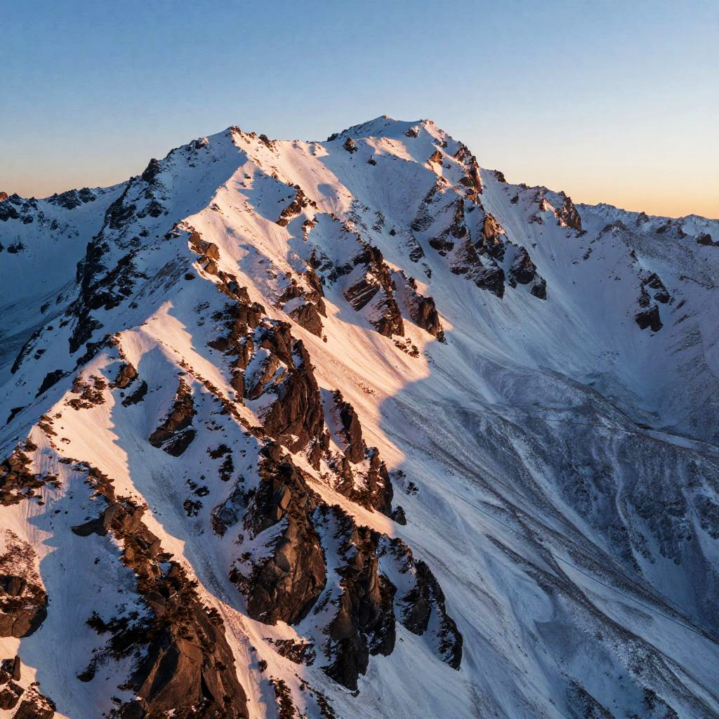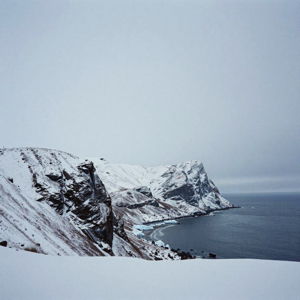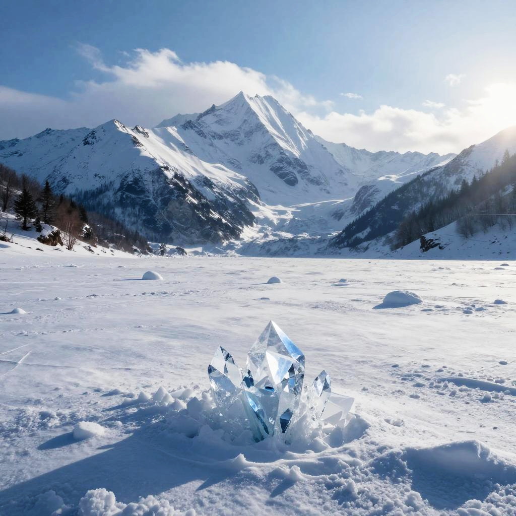 Snow-Capped Peaks, sharp ice shards, steady freezing rain, dim afternoon, Digital surrealism with sharp lighting contrasts