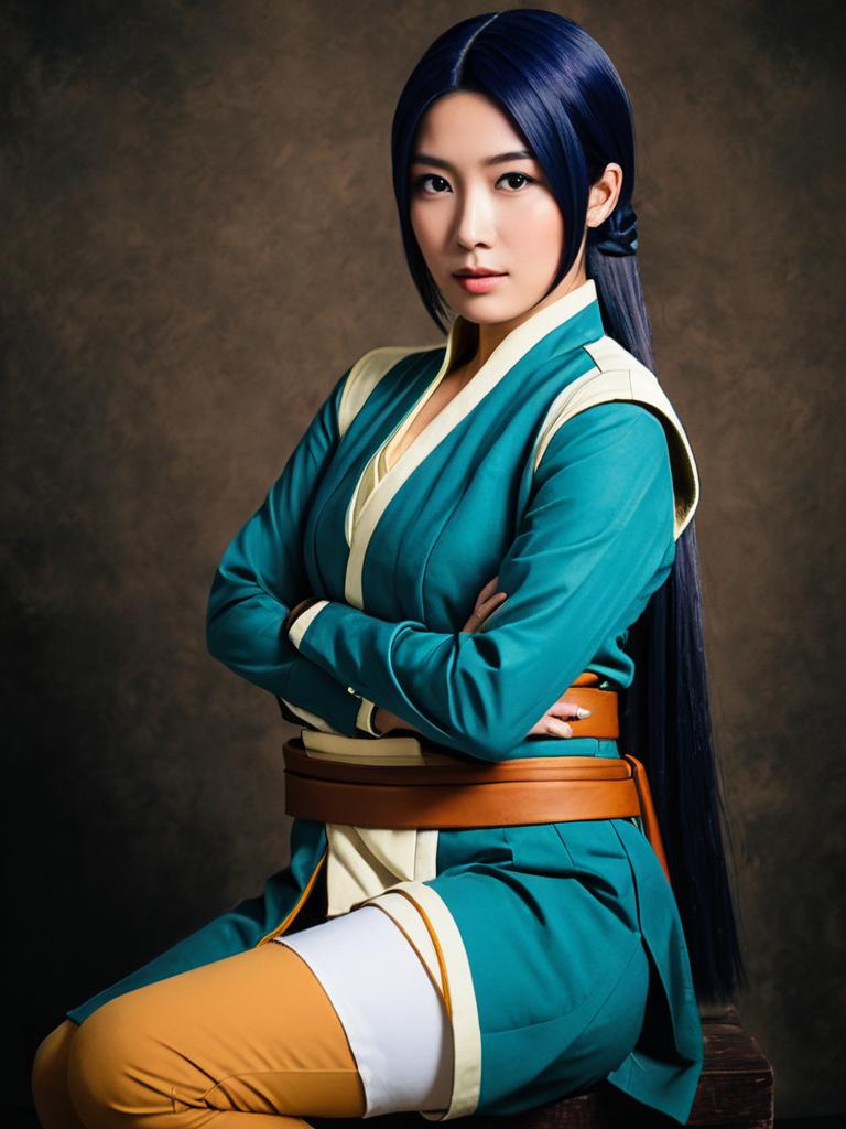Sexy cosplay woman character wearing Kanan Matsuura costume. Realistic photo. Jane Doe dressed as Kanan Matsuura --sref 1393