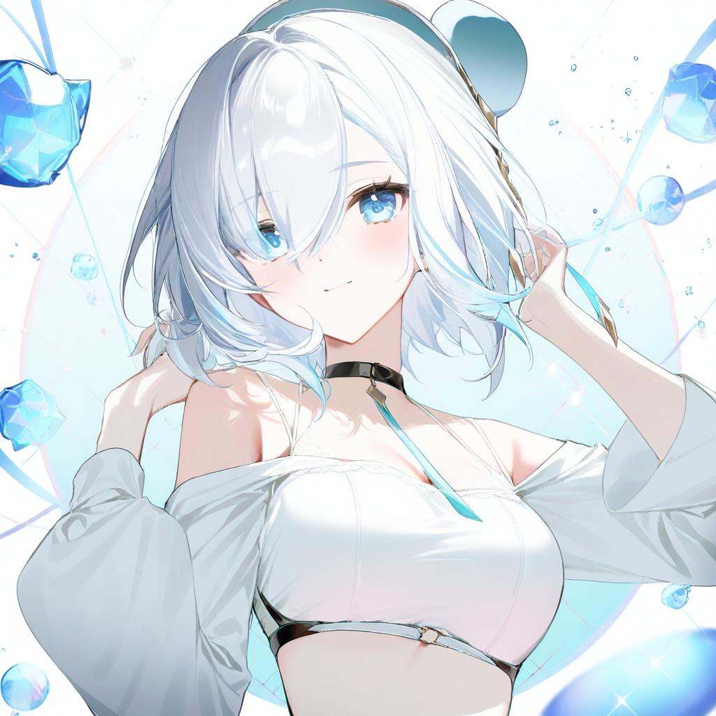 Aqua (kingdom hearts), kingdom hearts, 1girl, blue eyes, hair between eyes, blue hair, short hair, medium breasts, fingerless gloves, bare shoulders, detached sleeves, by artist gunp, illustrious