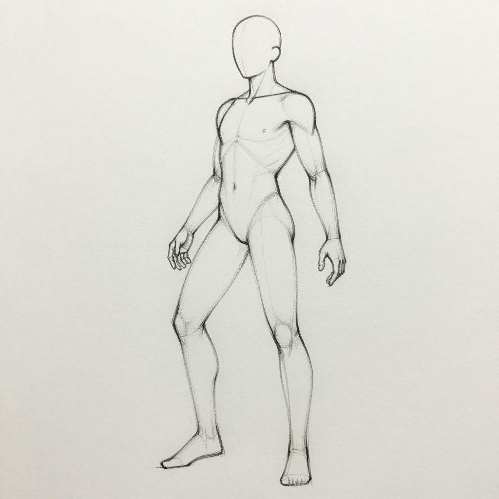 Drawing ideas body base: a dynamic human figure in neutral pose, showcasing anatomy structure, clean line art on plain background, focusing on proportions and muscle groups, ideal for artists looking to practice figure drawing and body base sketching.