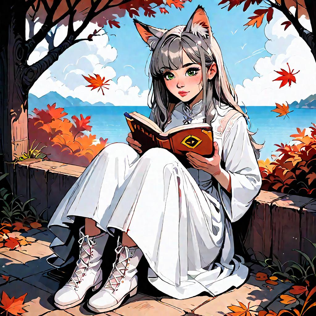 Autumn Reading Girl with Fox Ears