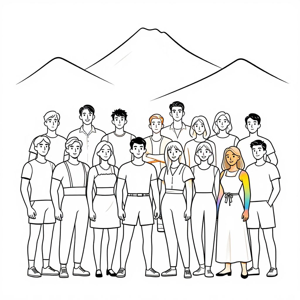 LGBTQ+ Friends Reunion Mountain Lineart