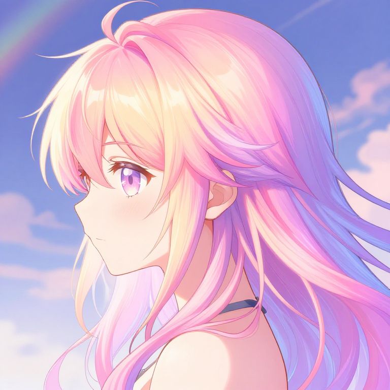 How to color anime hair tutorial style, close-up of anime character with flowing vibrant hair, detailed shading and highlights, soft gradient blending, digital painting, vivid pastel colors, sharp line art with delicate shadows, studio lighting effect, fantasy background