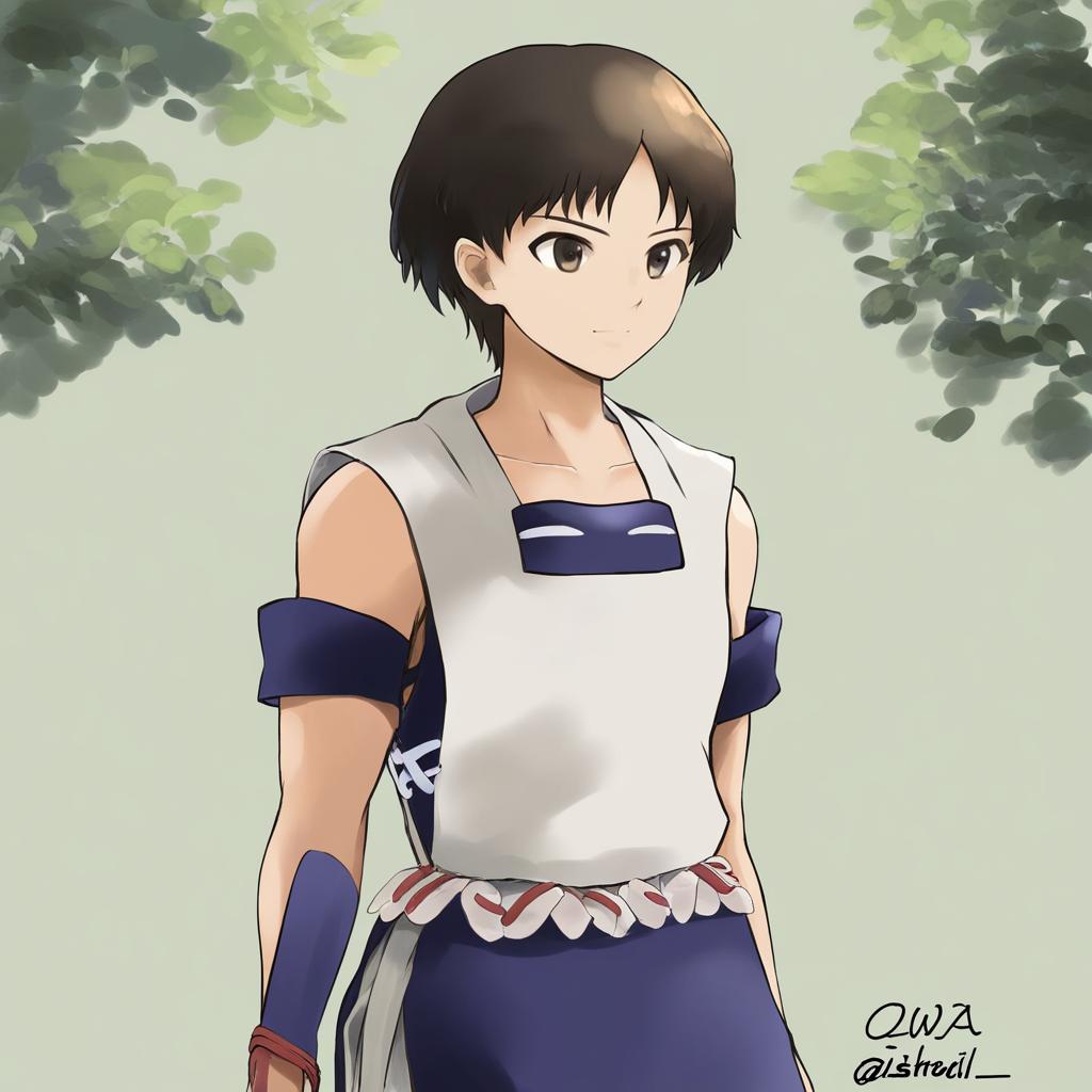 Ashitaka, mononoke hime, 1boy, brown eyes, short hair, brown hair, black hair, by artist sou (tuhut), leet