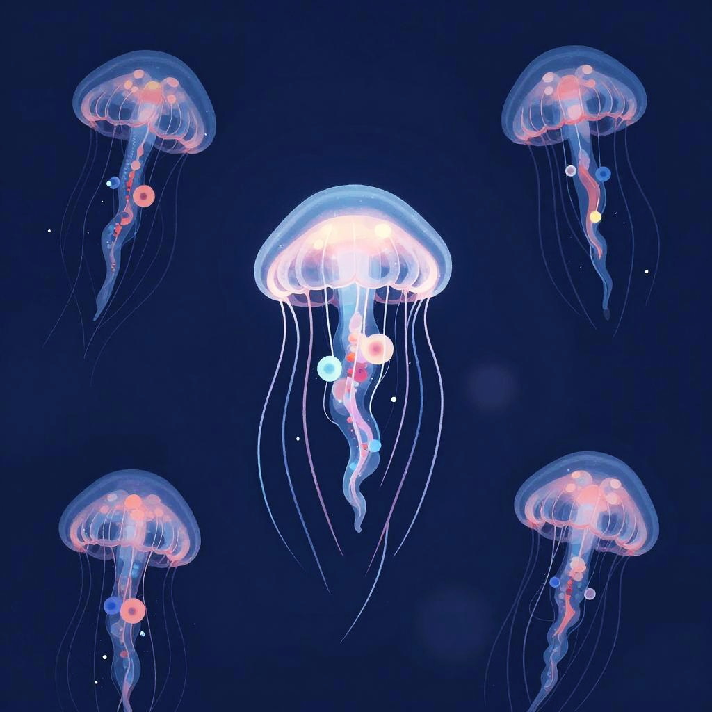 Retro-Futuristic Bioluminescent Jellyfish
