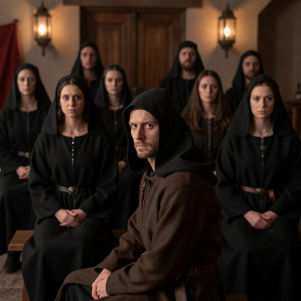 Medieval Room Scene with Concerned Figures