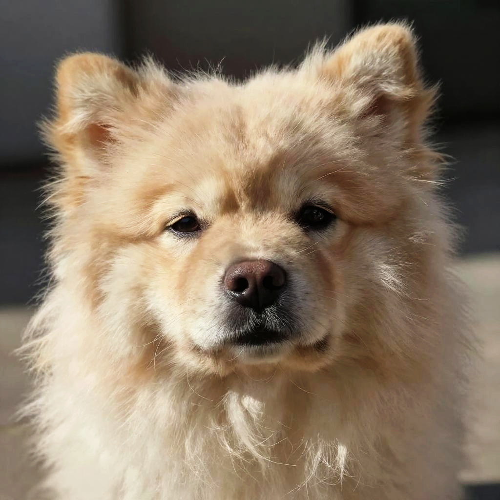 Close-up portrait of a chihuahua terrier mix with expressive eyes, soft fur blending tan and white colors, soft natural lighting highlighting delicate features, a cozy indoor setting