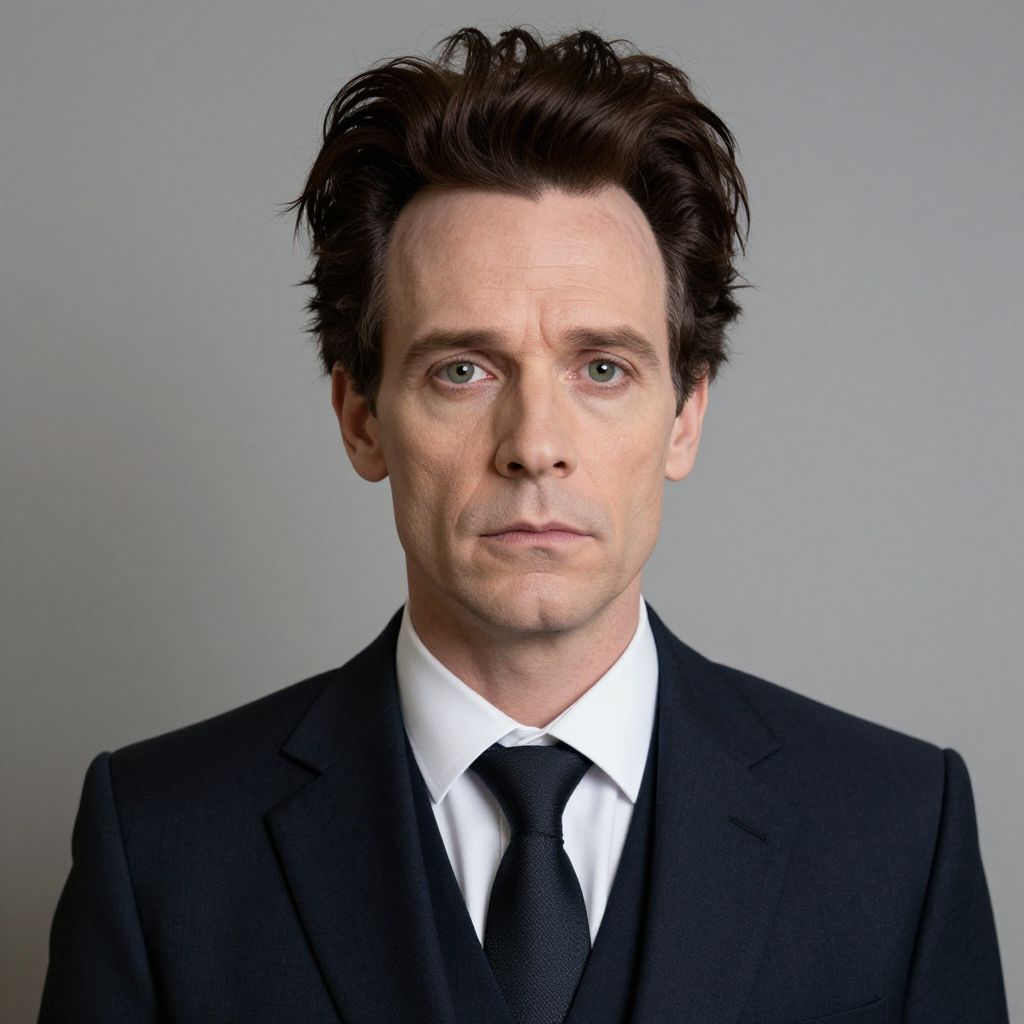 Mrs Frankenstein Costume, a close up of a man in a suit and tie with a fake head