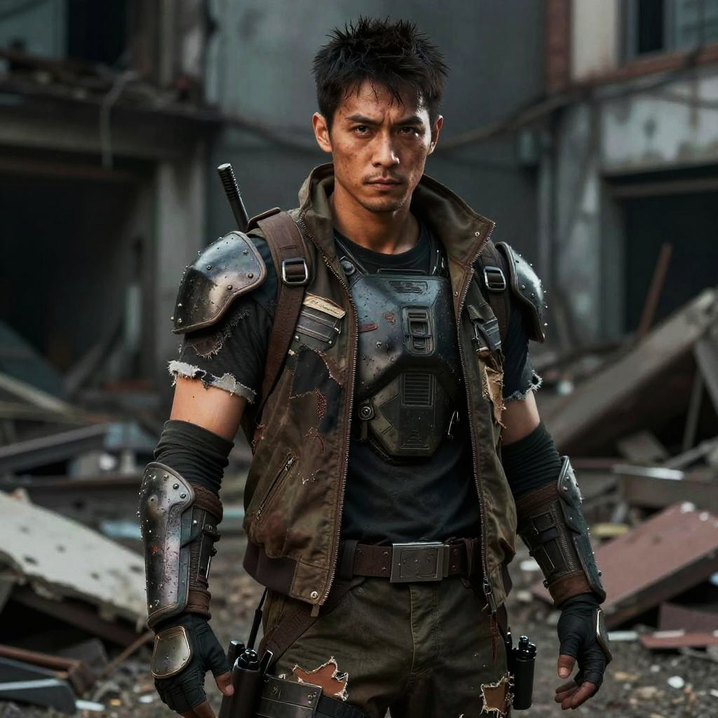 Muscular Man in Dark Metallic Armor