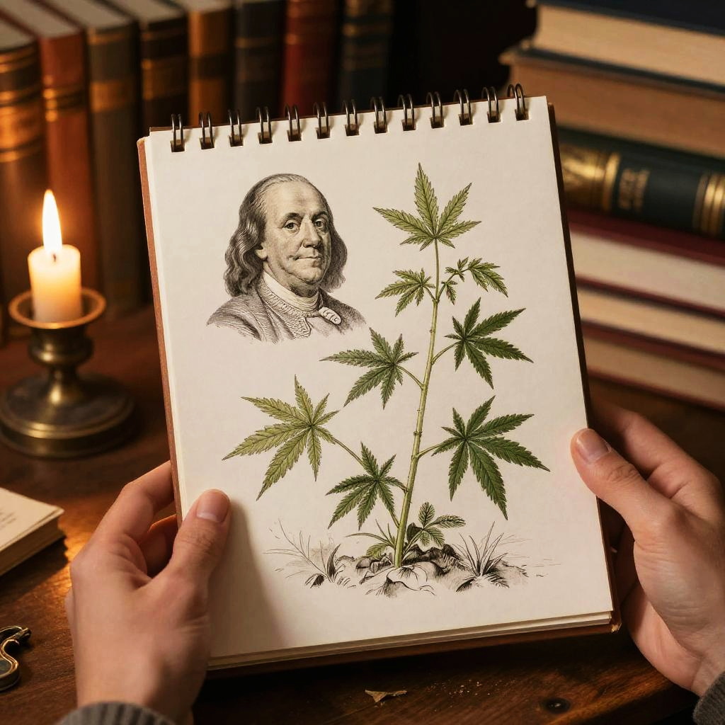 Benjamin Franklin Sketchbook with Hemp Plant Drawing