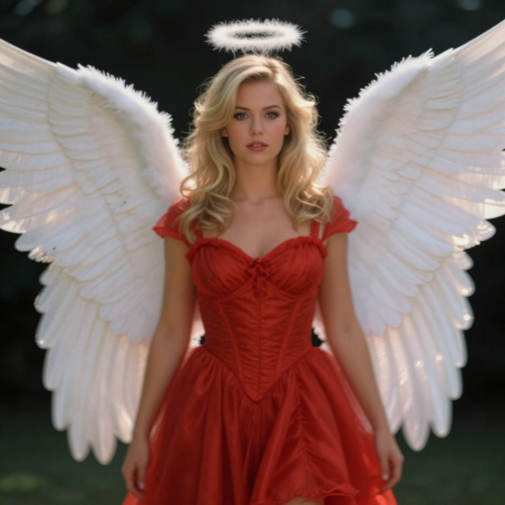 Red phoenix costume woman, 1girl, solo, wings, bodysuit, long hair, boots, breasts, blonde hair, gloves, brown hair, animification