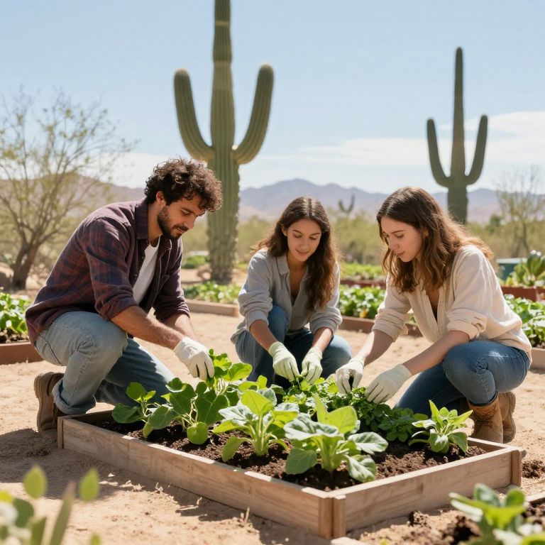 Young Adults Gardening in Sonoran Desert