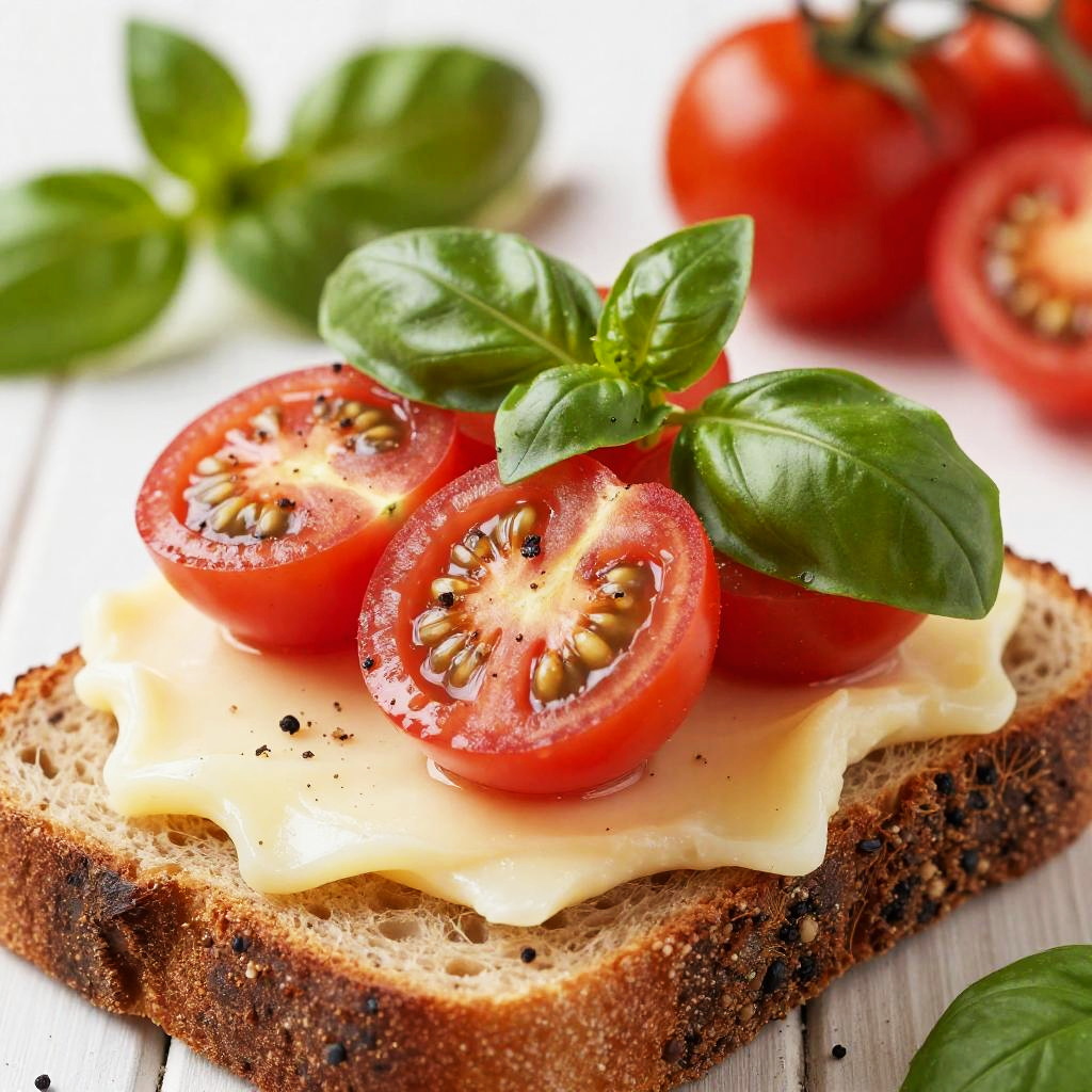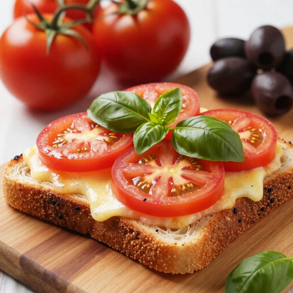Close-up Toasted Bread with Cheese and Tomato