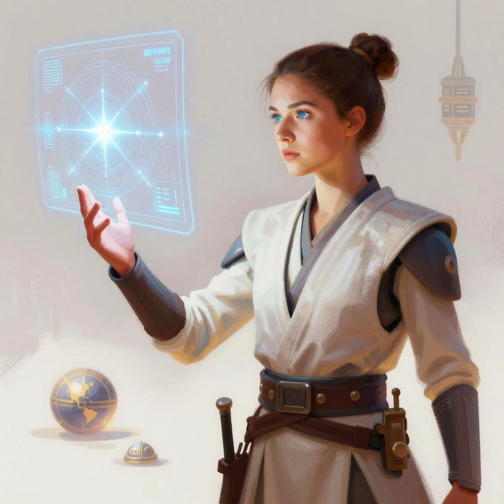 Picture of (anyachalotra), a woman as a sexy jedi master, modelshoot style, (extremely detailed CG unity 8k wallpaper), photo of the most beautiful artwork in the world, professional majestic oil painting by Ed Blinkey, Atey Ghailan, Studio Ghibli, by Jeremy Mann, Greg Manchess, Antonio Moro, trending on ArtStation, trending on CGSociety, Intricate, High Detail, (Sharp focus:1.1), dramatic, photorealistic painting art by midjourney and greg rutkowski, (natural light:1.1), (star wars ship interior:1.3), ((stormtroopers in the background)), (looking at viewer), (detailed eyes:1.2), (wielding a lightsaber:1.1), (revealing jedi attire:1.3), (defiance512:1.2), fight scene, (darth vader in background)