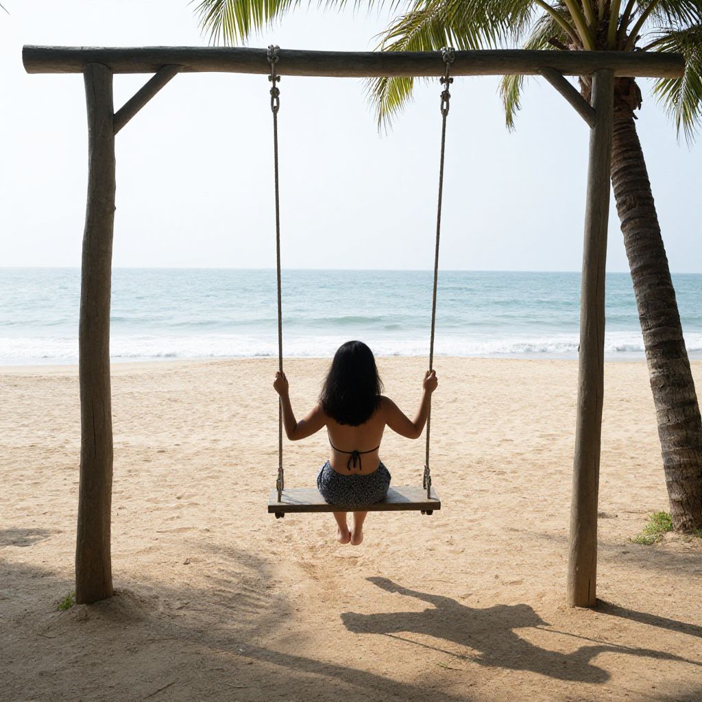 Lonely Woman Swinging on Beach