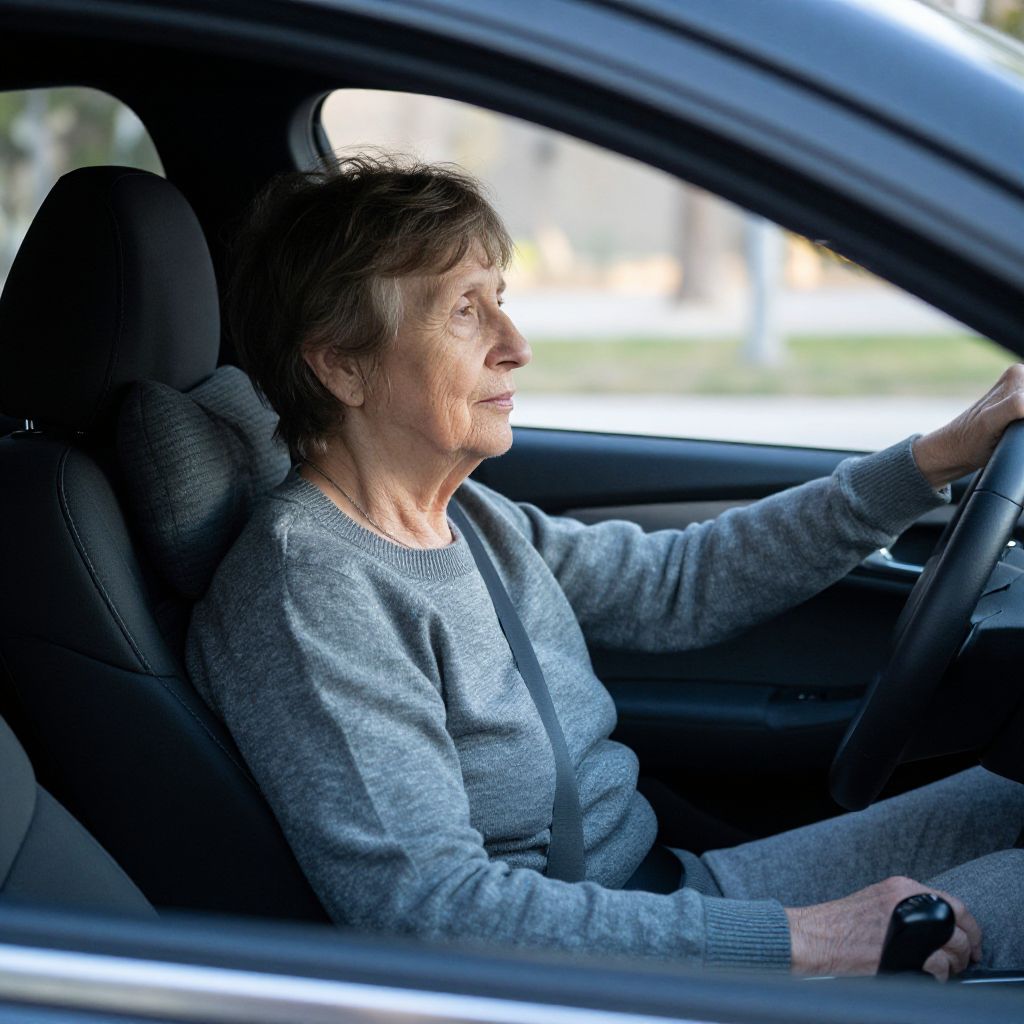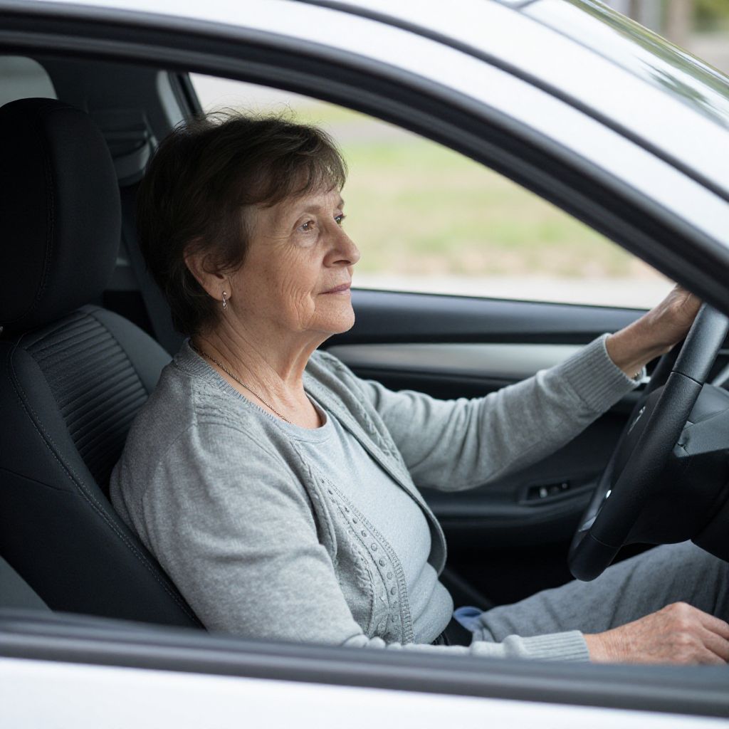 Elderly Woman in Car Passenger Seat