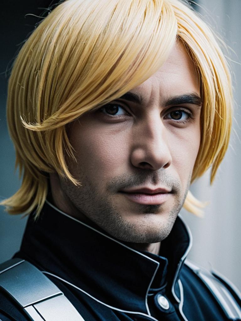 Man in Anya Cosplay, close-up detailed headshot with styled wig