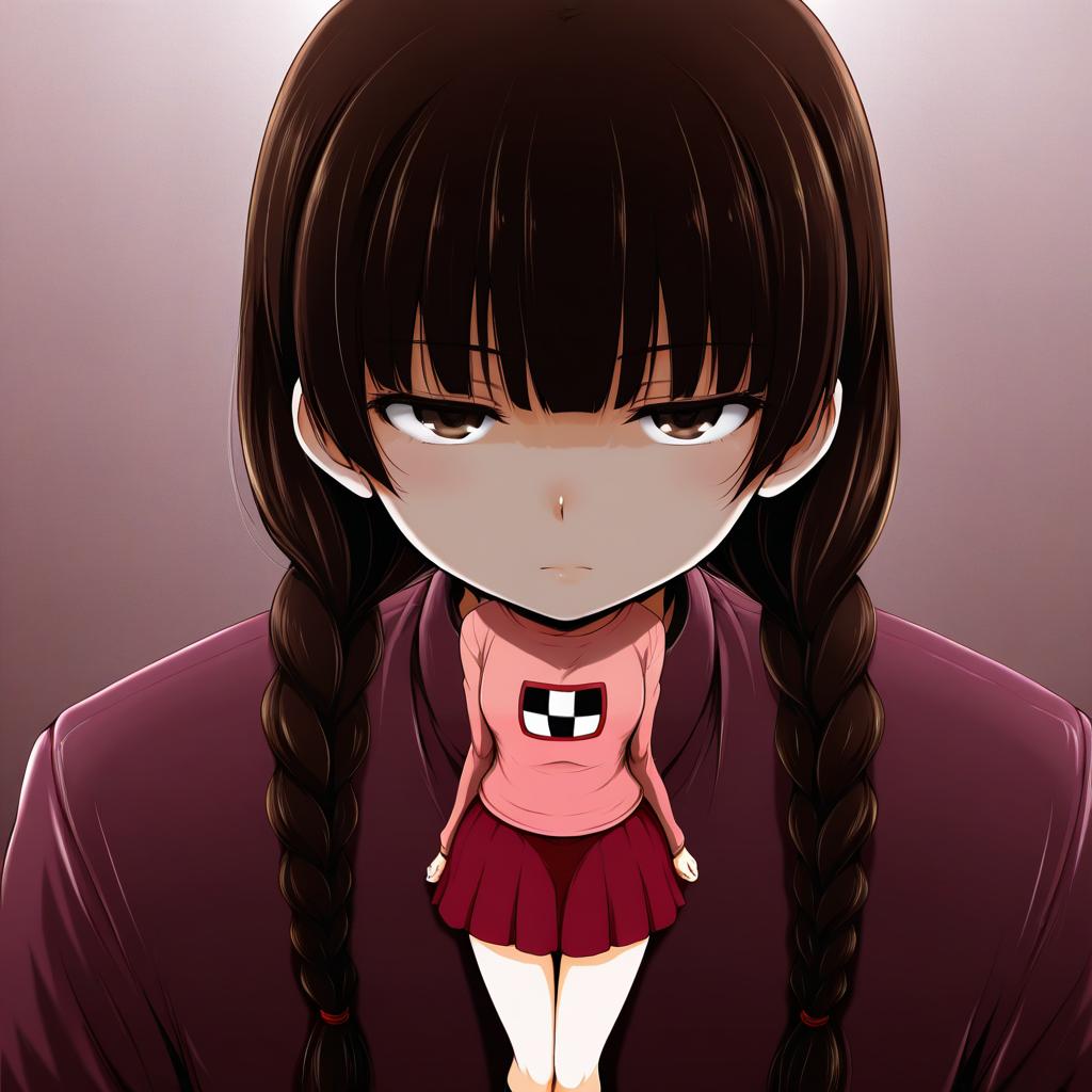 Monoe, yume nikki, 1girl, long hair, black hair, brown hair, twin braids, skirt, by artist sasaki akira (ugc), illustrious
