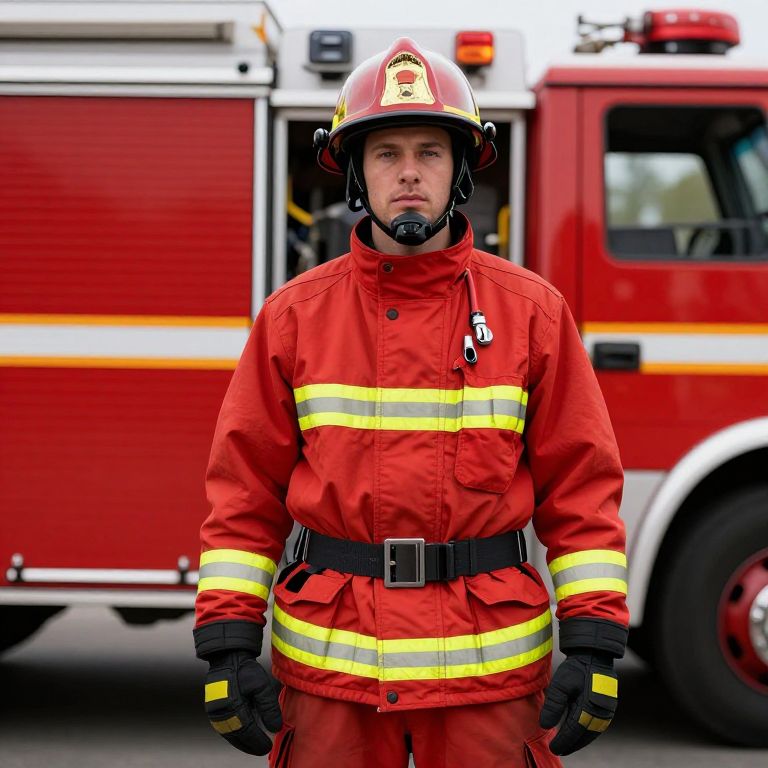 Firefighter in Red Uniform