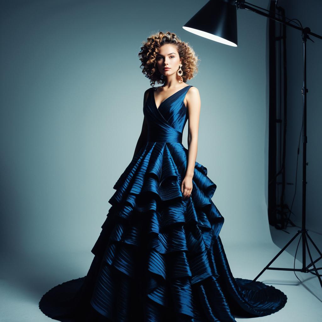 Fashion Model in Satin Gown with Slick Back Hairstyle