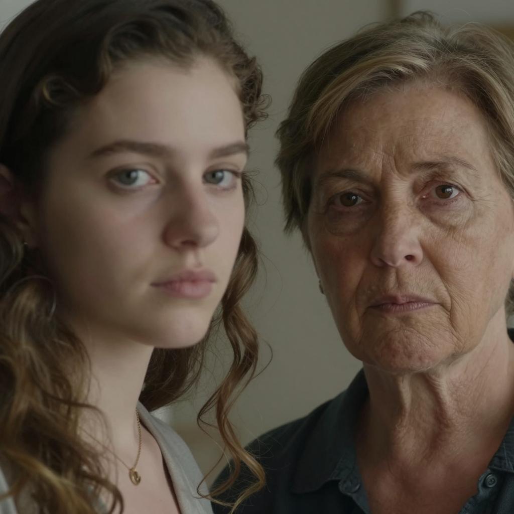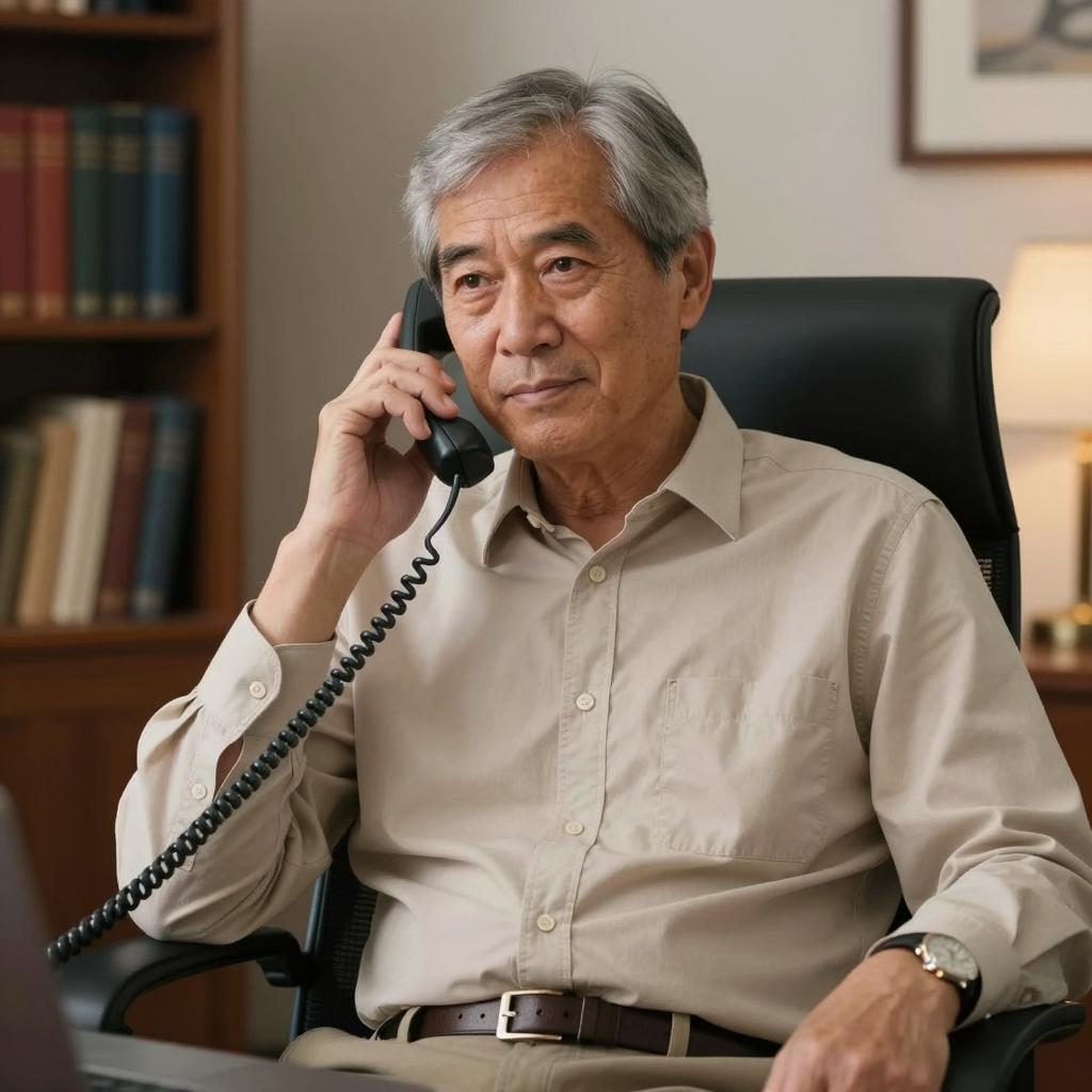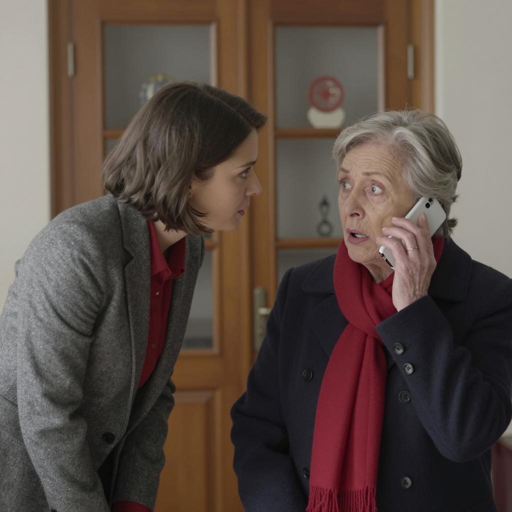 Concerned Woman on a Corded Phone