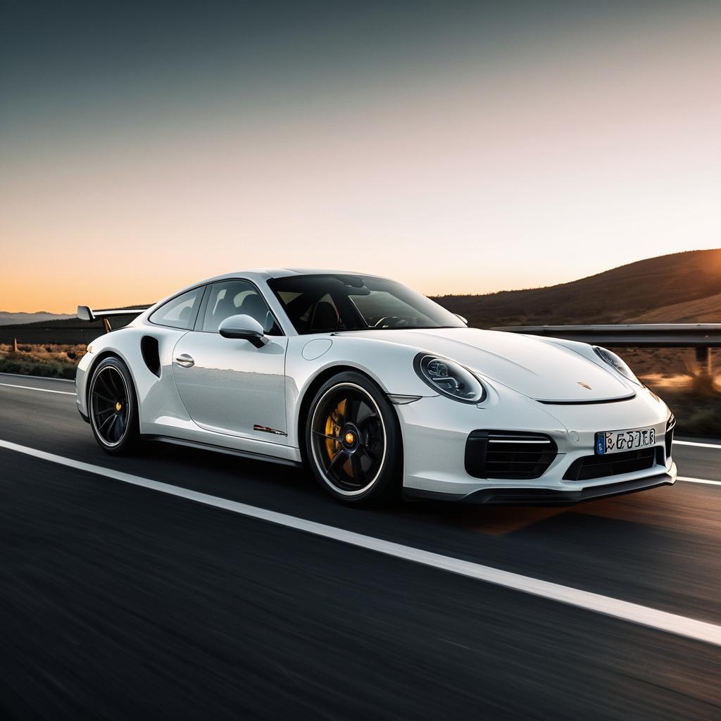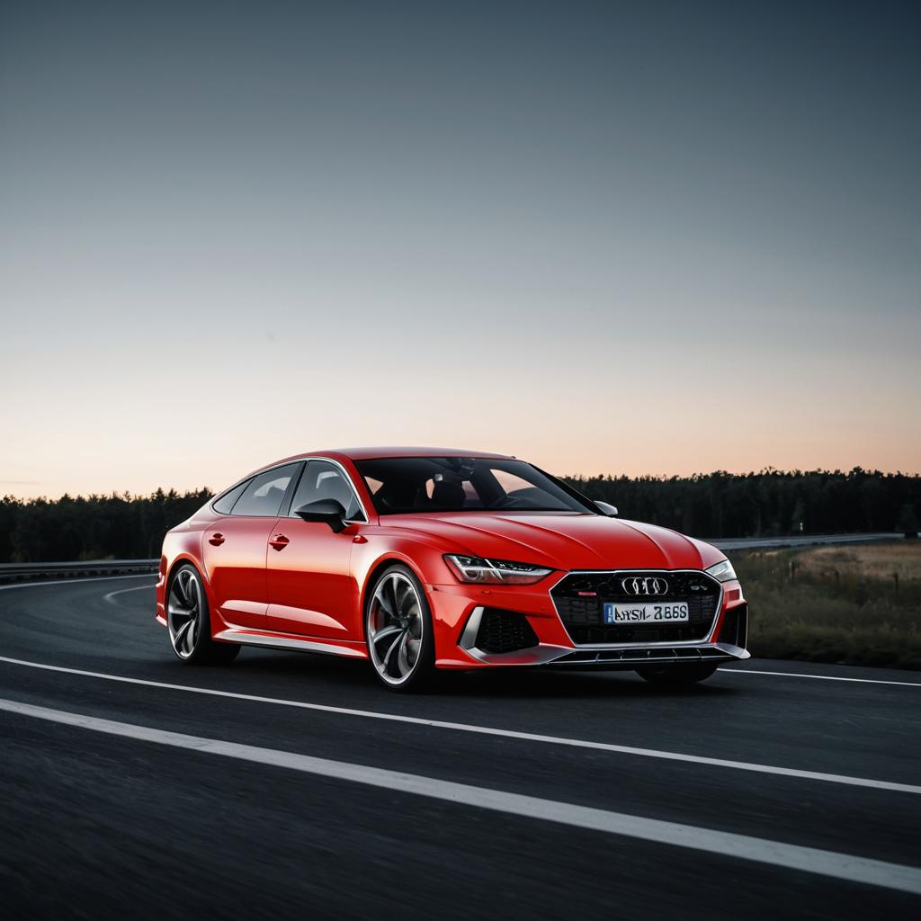 Red vintage motorcycle, hyper-realistic award-winning professional photo, tinted windows, sunrise glow, full-body photography on a very big road, real-world reflections, sharp focus, high detail,