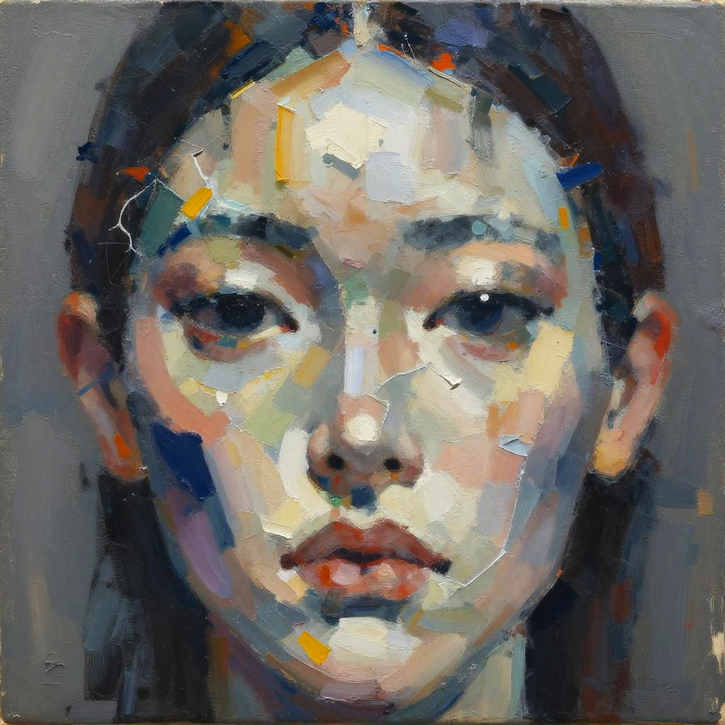 Gloomy eye, abstract artwork featuring a large eye with swirling shadows and blurred edges, muted dark colors, expressionist painting style, emotional intensity