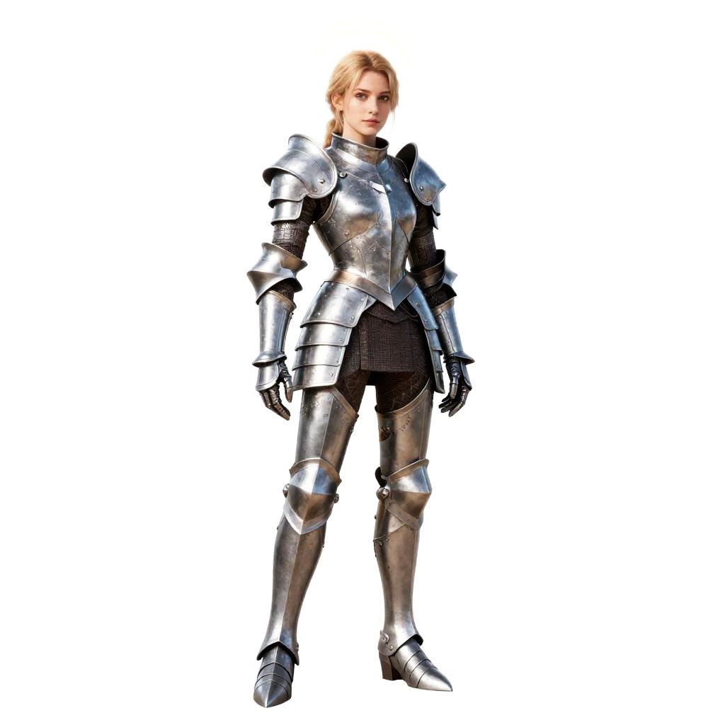 1girl, full body of beautiful paladin, armor, glowing halo, very detailed, realistic, simple background, transparent background
